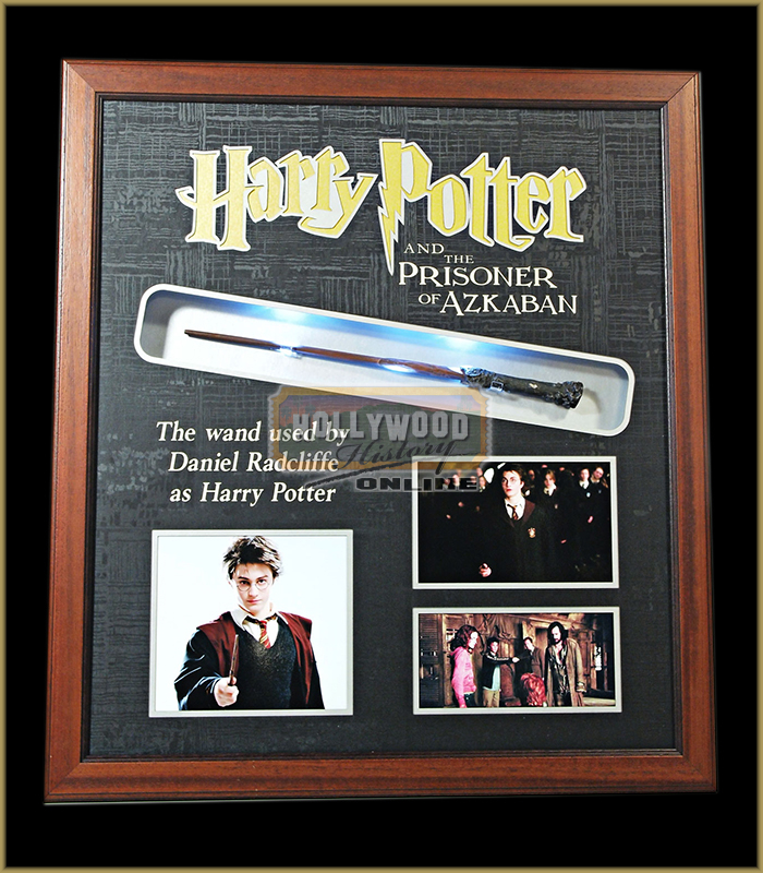 This wand was used by the character Harry Potter (Daniel Radcliffe) in the third installment of the series, “Harry Potter and the Prisoner of Azkaban” (2004). In the film, Harry’s wand is eleven inches long and made of holly. Its core is made of Dumbledore’s Phoenix Fawkes’ tail feather. It was crafted by the wand maker Ollivander, who had also crafted a twin wand from yew and the only other feather that particular phoenix ever gave. This twin wand chose Tom Marvolo Riddle as its wielder. Riddle, under the alias of Lord Voldemort, would later use this wand to attack Harry and his parents. The two wands, sharing the same phoenix origin, have a unique connection which prevents them from successfully dueling against each other. Wands are one of the most collectible items from the series and are often easily recognizable when the films are released. This iconic wand of the famous wizard Harry Potter was made and molded using hard resin/plastic.