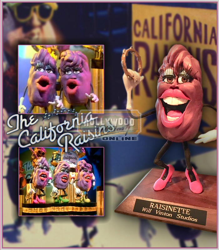 Will Vinton Studios produced a series of popular Claymation commercials for the CALRAB (California Raisin Advisory Board) with Ray Charles, The Tempations and Michael Jackson. Ray sang the refrain of the campaign’s theme song, I Heard It Through The Grapevine. “Ray Charles was a natural for the spot because he, like the Raisins, epitomizes the meaning of cool,” CALRAB director Robert Phinney said. This is a Raisinette stop motion puppet used in the 1988 Ray Charles and the California Raisins Commercial.