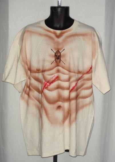 Tan crew t-shirt from the film 300. The front has the Spartan helmet with 2 spears that are crossed. The back has the 300 logo and “Better to Die on Your Feet Than Live on Your Knees” Stunt Team. T-shirt is size XL and has not been worn.