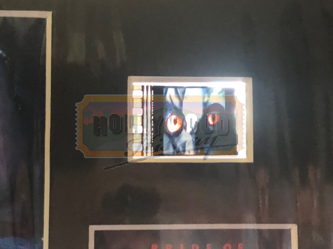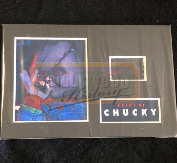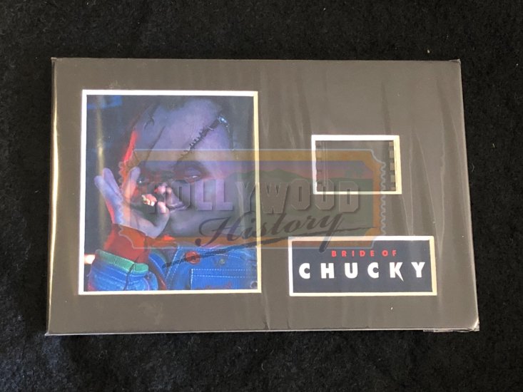 Chucky, the doll possessed by a serial killer, discovers the perfect mate to kill and revive into the body of another doll. This is an original 35mm film cell from the Bride of Chucky.