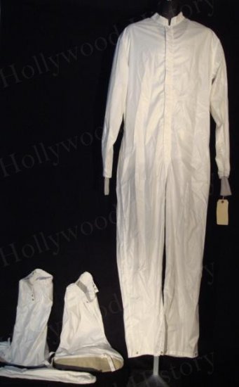 This costume was worn by Alfred Molina as Dr. Stephen Arden and can be seen worn in the lab scenes. Includes white lab jumpsuit,socks, booties and t-shirt.