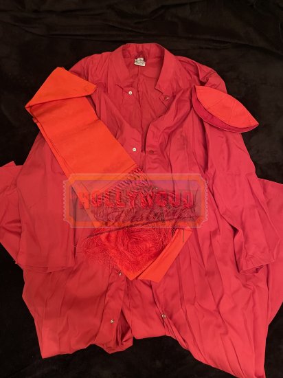 Mary Elizabeth goes to bed alone one night, still a twenty one year old virgin, and wakes up the next morning pregnant. Possessed by the demon fetus growing within her womb, Mary Elizabeth obeys her homicidal cravings to kill, for the sake of her unborn spawn. Mary Elizabeth’s dark transformation is controlled by her unborn demon child’s deadly evil cravings. This Cardinal outfit was worn by Kane Hodder in his portrayal of a cardinal in the movie Born. This lot comes with red shirt, red sash and red hat.