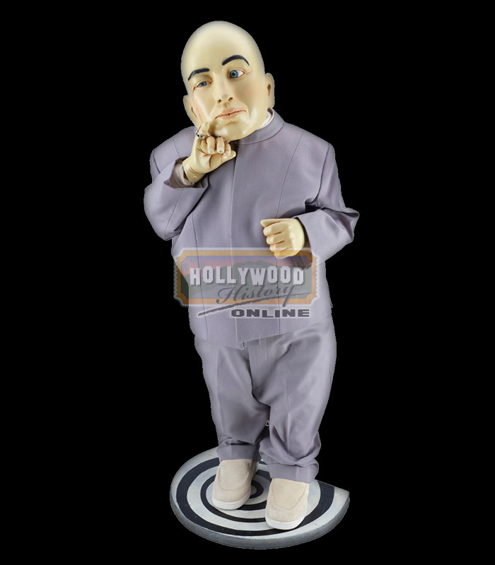 The clone was identical in every way, but he was one-eighth his size. Upon being introduced to his clone, Dr. Evil immediately declared, “Breathtaking. I shall call him… Mini-Me. “This is the costume worn by Verne Troyer as Mini-Me in the 1999 comedy Austin Powers: The Spy Who Shagged Me. This instantly recognizable tiny costume was custom made for the tiny 2 ft 8 inch tall actor and consists of a gray polyester suit jacket and matching pants with a pair of white leather sneakers. It also includes a custom mannequin display sculpted and painted to resemble Mini-Me along with a replica of the clone’s signature pinky ring.