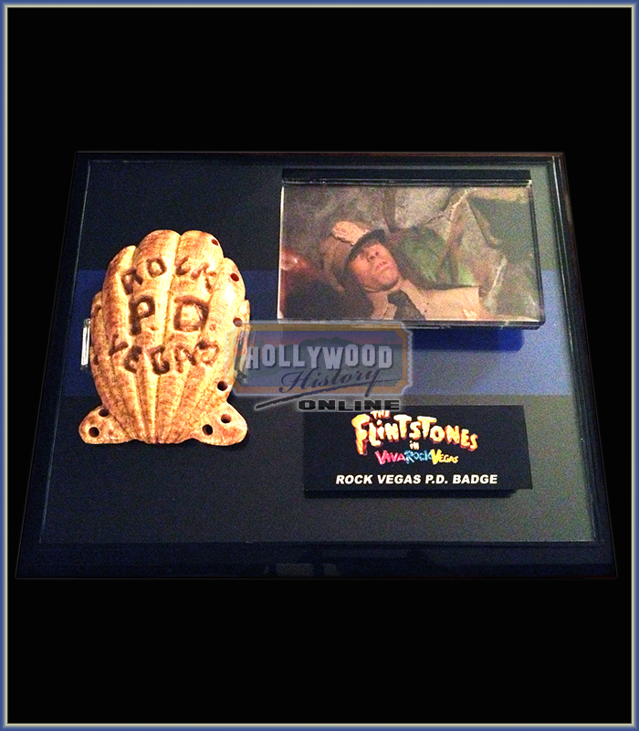 Yabba-dabba-doo! Digital dinosaurs rule the day when Fred (Mark Addy), Barney (Stephen Baldwin), Betty (Jane Krakowski) and Wilma (Kristen Johnston) take Vegas by storm in this prequel that views their lives before marriage. A staple of the old Hanna-Barbera cartoon series, this Rock Vegas Police badge can clearly be seen being worn on the Bedrock Police Officers hat and is made of a resin material.