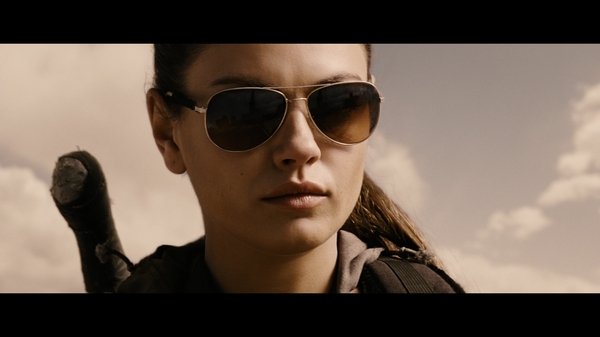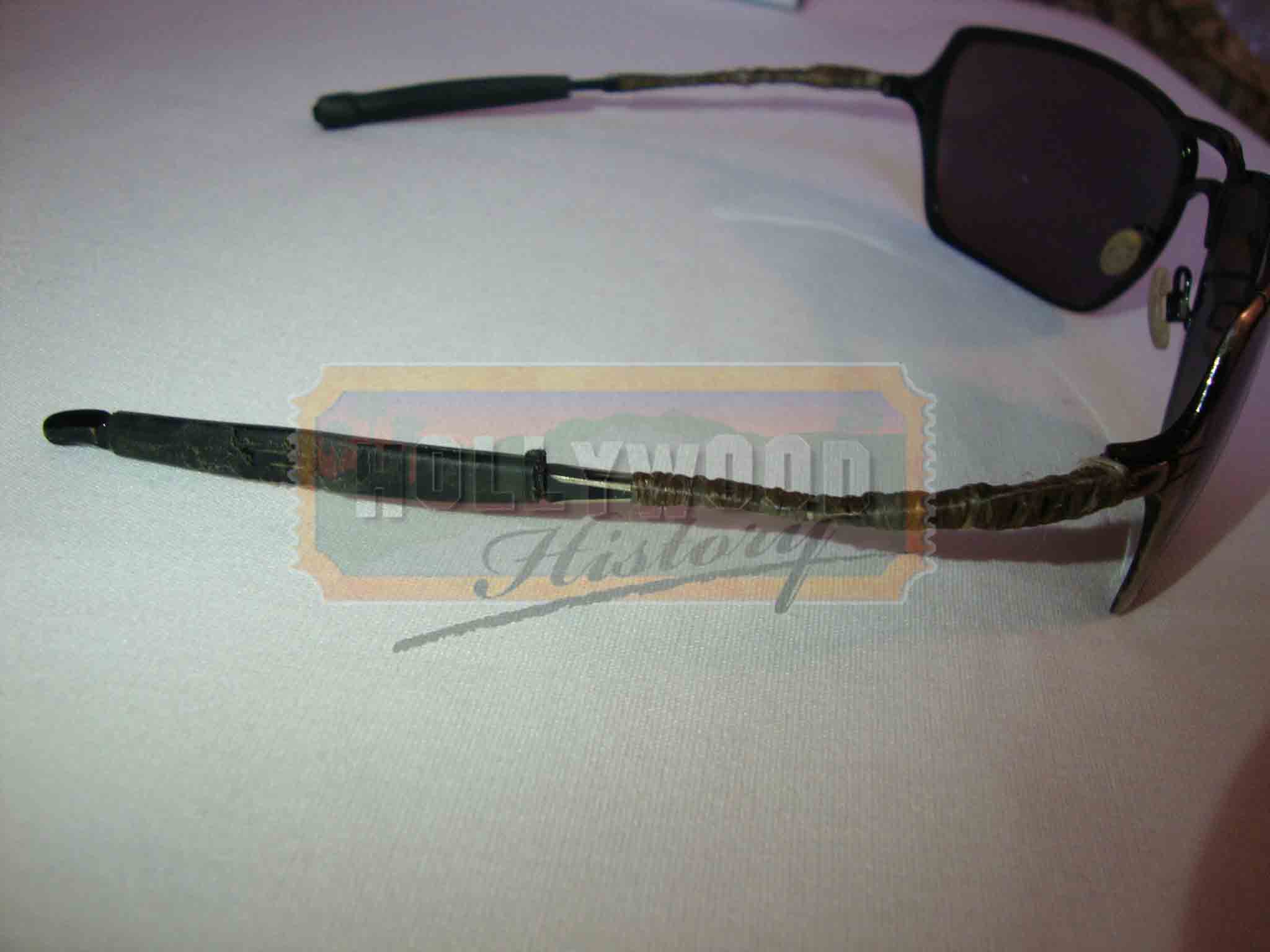 Solara’s (Mila Kunis) sunglasses worn in the Denzel Washington post-apocalyptic drama, The Book of Eli. The downtrodden daughter of gang leader Carnegie (Gary Oldman) can be seen wearing these glasses throughout the movie. The Mosely Tribes aviator glasses have golden rims and the arms have been wrapped in twine and silver duct tape to appear heavily repaired. The tinted lenses have also been scratched and appear intentional to fit in with the distressed look.