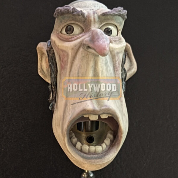 A young orphaned boy raised by underground cave-dwelling trash collectors tries to save his friends from an evil exterminator. From the 2014 Laika stop motion film, The Boxtrolls, this is theĀ puppet head of Sir Broderick of the White Hats voiced by James Urbaniak.