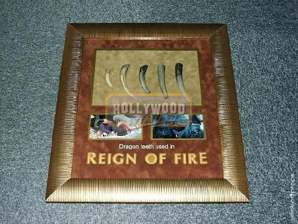 This is a collection of the teeth used in the mouth of the full-size dead Bull Dragon built for the scenes in which the actors needed to interact with a physical beast in the movie Reign of Fire. At the time, the Dragon buildup was the largest puppet ever made for a movie.