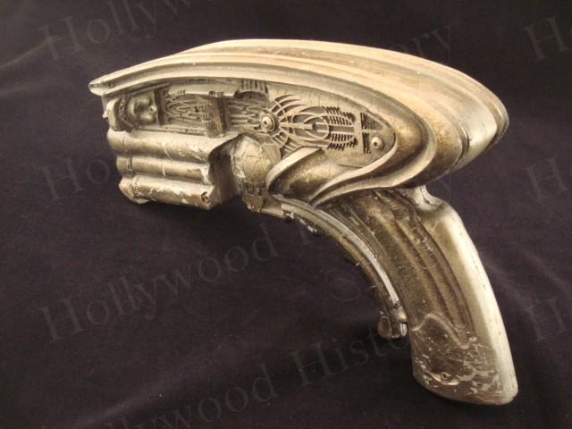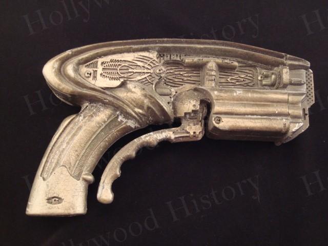A prop Necromonger stunt pistol used in the Pitch Black sequal The Chronicles of Riddick starring Vin Diesel. The Necromongers are seen carring the pistol thruout the film. It is made of hard rubber, painted and detailed. Measures approx 10in x 6in