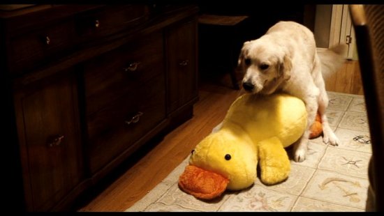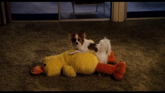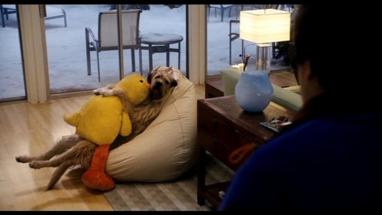 Workaholic architect Michael Newman (Adam Sandler) stumbles on a universal remote control that allows him to pause events in his life or fast-forward through them. But things get really bizarre when the gadget develops a mind of its own and takes control of Michael’s viewing choices, causing him to see how much of his family life he’s sacrificed for his career. This is one of the large stuffed ducks that was used on screen in the film Click. You can see the duck multiple times during the film while the dogs are getting busy. This particular version is light weight which allowed it to be moved easily by the dogs..
