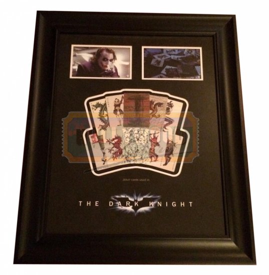 The Joker’s (Heath Ledger) existence is hinted at the end of the 2005 film Batman Begins, where Lieutenant James Gordon (Gary Oldman) tells Batman (Christian Bale) of an armed robber who leaves Joker playing cards at scenes of his crimes. He later appears in the 2008 sequel, The Dark Knight, portrayed by Heath Ledger, who told Sarah Lyall of The New York Times that he viewed that film’s version of the character as a “psychopathic, mass murdering, schizophrenic clown with zero empathy.” This is a framed set of Joker’s cards used to antagonize Batman and the citizens of Gotham City, while also leaving them behind once he had committed a crime. These iconic cards are the most visible ones throughout the film.
