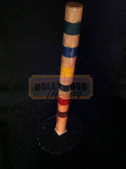 A croquet stake used in Patrick Lussier’s direct-to-DVD vampire sequel Dracula III: Legacy. Five years after the events of Dracula II: Ascension, Father Uffizi (Jason Scott Lee) hunts down Dracula (Rutger Hauer) to a castle in the mountains of Romania. This stake, made from a croquet marker, was used by the vampire hunter Luke (Jason London) at the beginning of the film to appear as having stabbed one of the vampires. The piece is made of wood with six colored rings painted at the top and shorted with a base to attach one the actor to make the scene appear the stake was stabbed into him. Well used on the production, the piece shows signs of wear including some light damage to the wood.