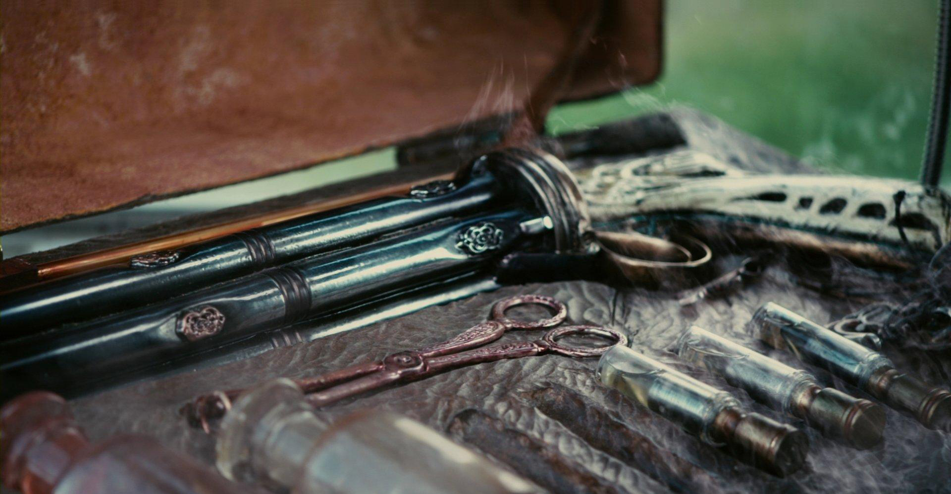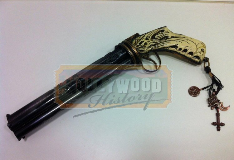 This Hero Hardcopy (highly detailed resin version) of the Godkiller has hand grips with demonic carvings to suggest a weapon that has been brought from Hell. In the film, this gun is known as the “Godkiller”, which Milton stole before breaking out of hell and is the only gun that is capable of destroying “The Accountant”, who seeks to send Milton back! Also featured on the handgrip is a group of leather strings with several metal charms attached: a crescent moon, an upside down cross, a dragon, and a star with a demon head in the center. “I just thought that the GodKiller, this mythical weapon in the film, should have a history when you see the case to it,” – he said – “I ended up spending an enormous amount of money making a case for it… Patrick was very specific. He said, ‘The case should look like it’s from Hell and has been through Hell and traveled a million miles.” – Gary J. Tunnicliffe