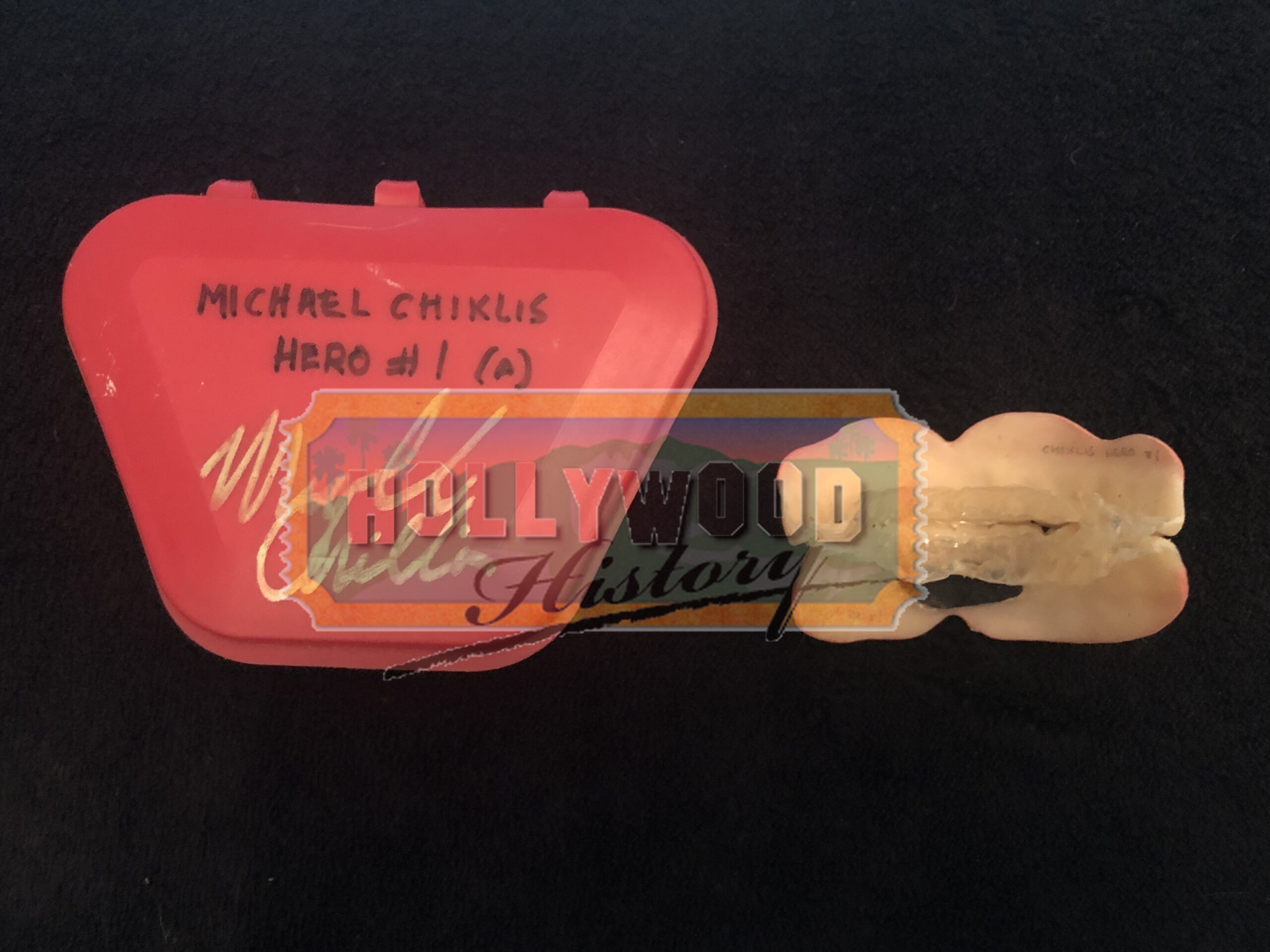 A group of astronauts gain superpowers after a cosmic radiation exposure and must use them to oppose the plans of their enemy, Doctor Victor Von Doom. These teeth were worn by Michael Chiklis as Ben Grimm/The Thing. The Teeth were created using a mold of Chiklis’ teeth to ensure the perfect fit and come with a storage case signed by Chiklis.