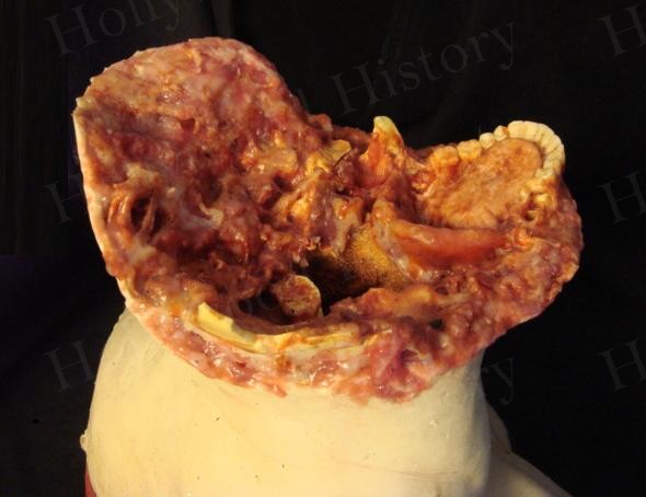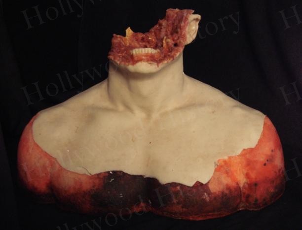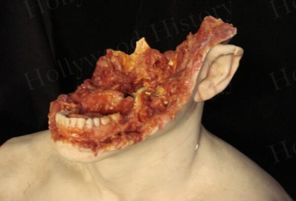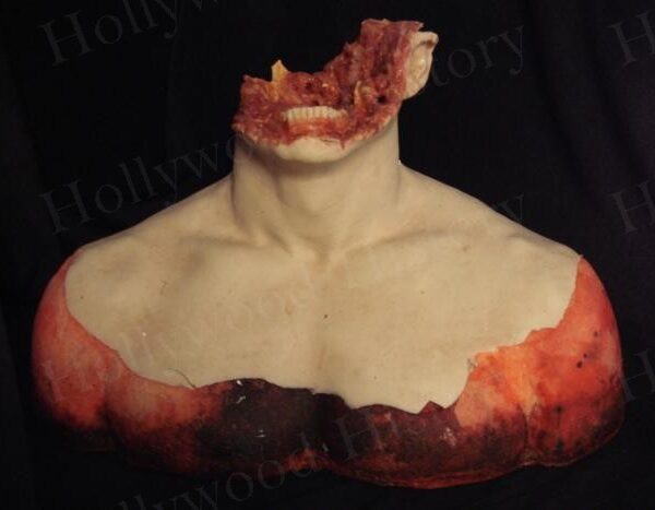 The Beer Guy’s (Judah Friedlander) special F/X crushed head used in the Project Greenlight horror film “Feast”. Made by one of the leading Special Effects Artists in the industry, there is still evidence of fake blood from when it was used during filming. This head was used during the gruesome scene when the Creature crushes the Beer guy’s head and you see it explode on screen.