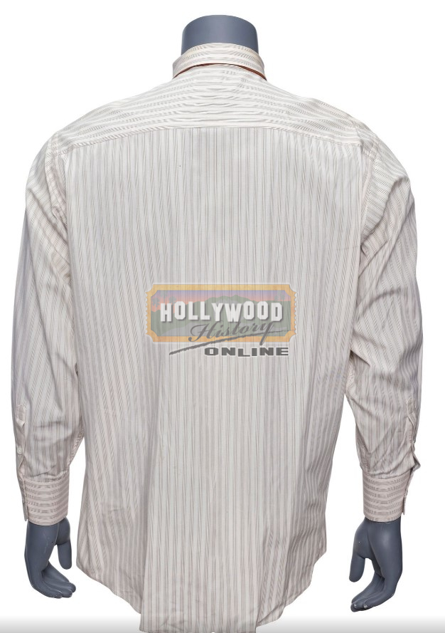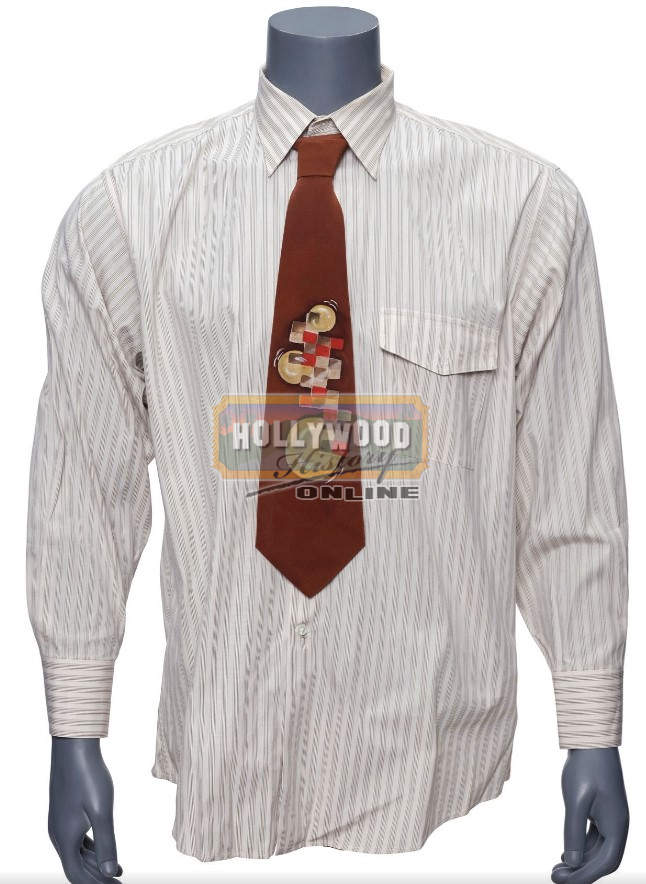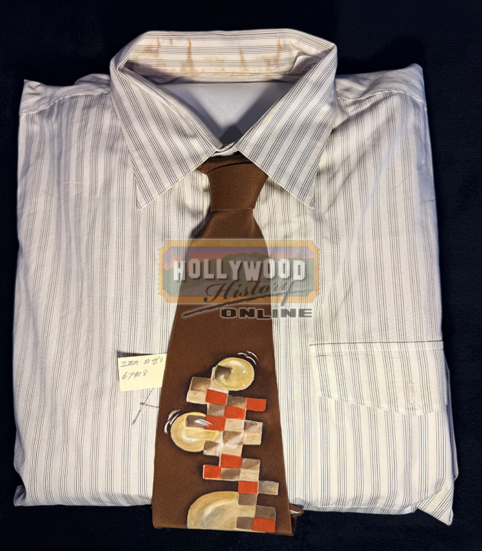 Gentle Rosenberg’s (Mike Nussbaum) dress shirt and tie from Barry Sonnenfeld’s sci-fi comedy Men in Black. Arquillian prince Gentle Rosenburg’s human exo-suit wore this shirt and tie when he was attacked by The Bug (Vincent D’Onofrio) as he had lunch with a fellow Arquillian. This lot consists of one shirt and a tie that is hand-painted. The shirt exhibits some staining around the neckline.
