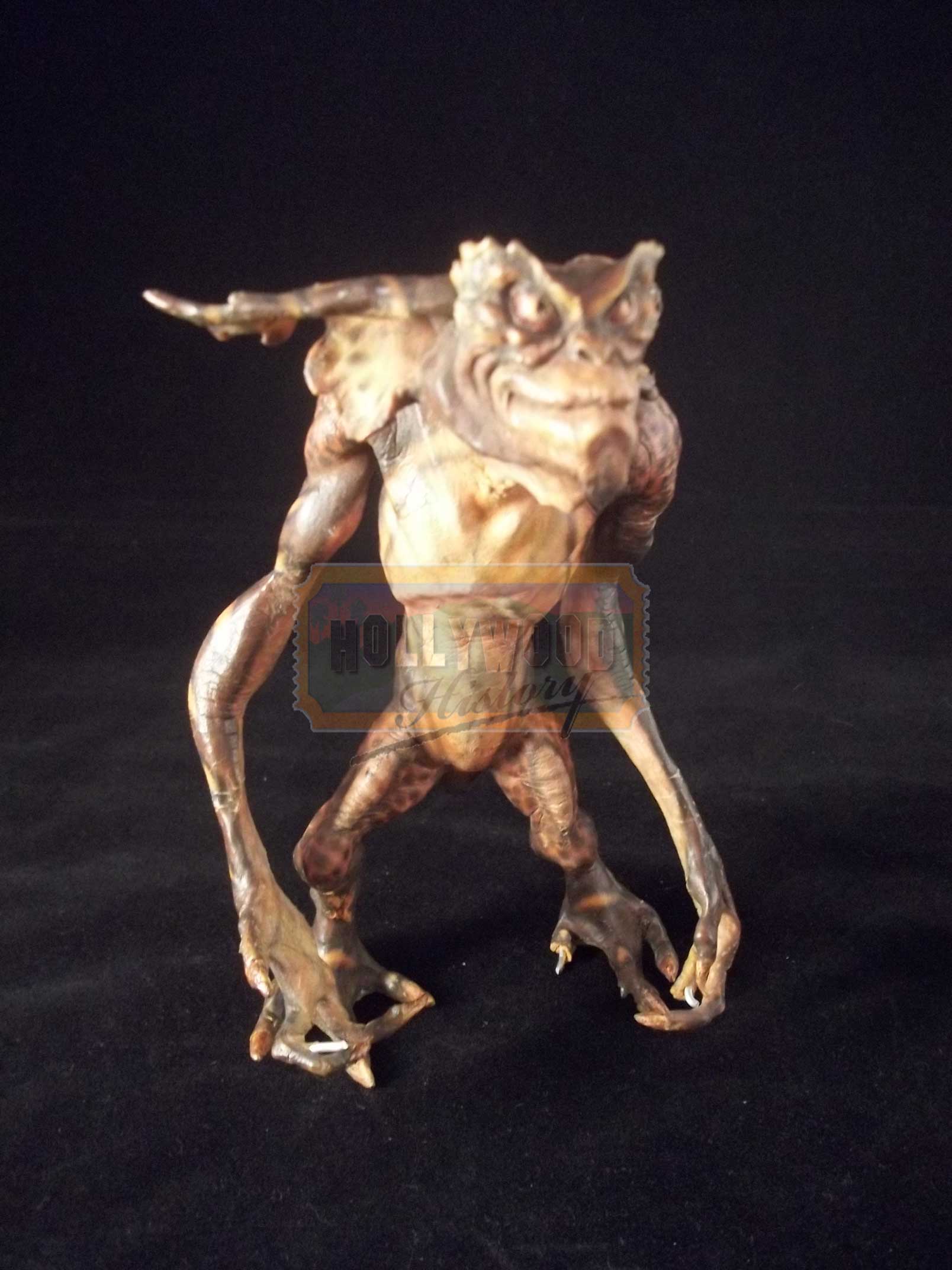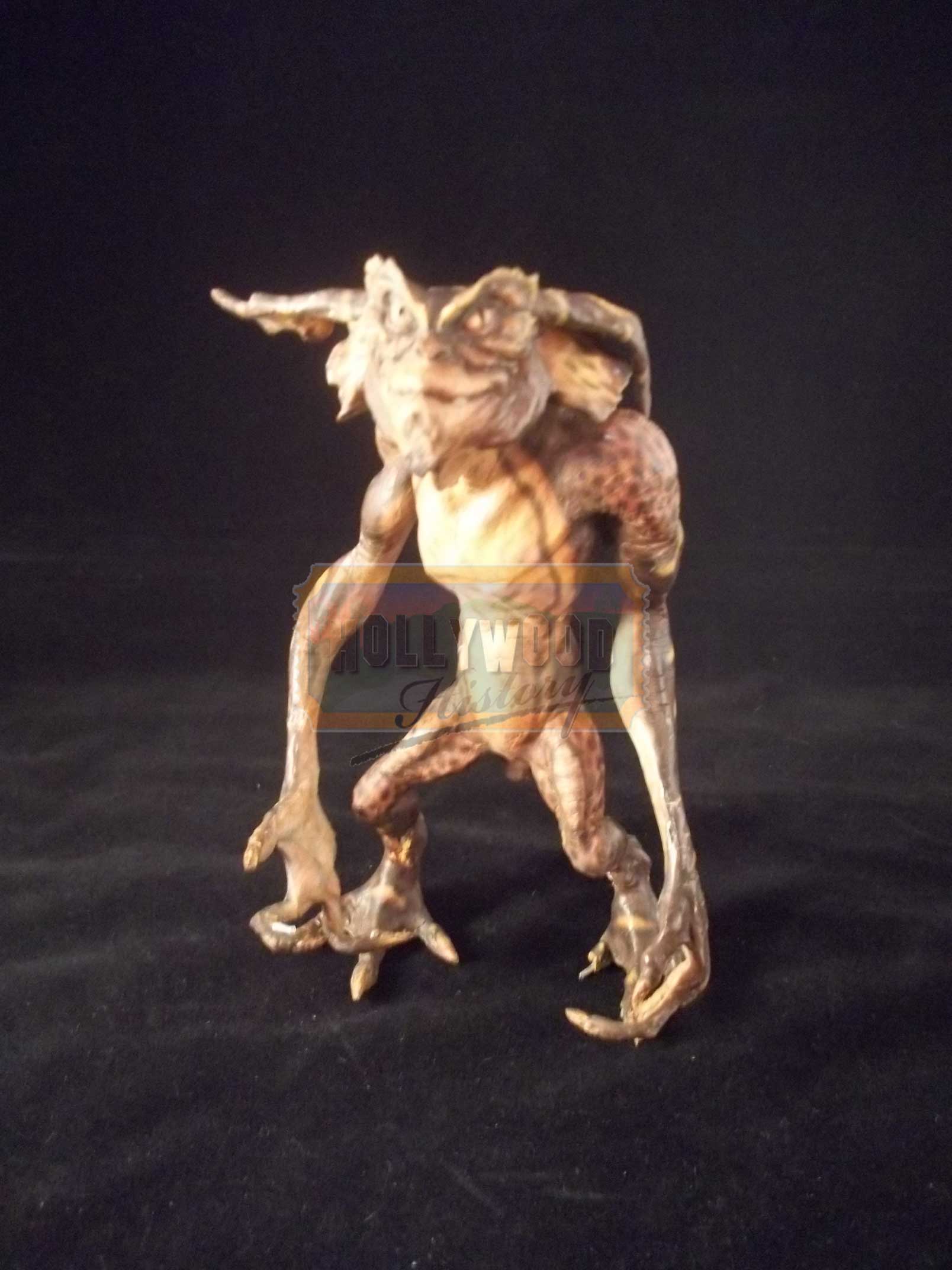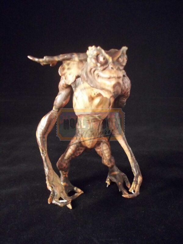 This is a miniature stop motion Gremlin used in the 1990 Joe Dante film, Gremlins 2: The New Batch. This particular Gremlin puppet was created and designed by the legendary Rick Baker. Made of foam latex and flexible wire armature, this allowed the puppets to be animated when filming any stop motion scenes. This type of Gremlin can be seen during the elevator scene and an instantly recognizable piece. He is in excellent condition with minor wear from production use.