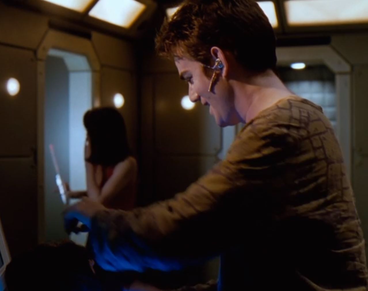 Jason Voorhees returns with a new look, a new machete, and his same murderous attitude as he is awakened on a spaceship in the 25th century. This Light-Up Laser Tool has a metal handle with plastic light up tip that still functions. It was used after nanobots have revived Jason into his Uber Jason form as the crew desperately tries to fix a stuck escape hatch.
