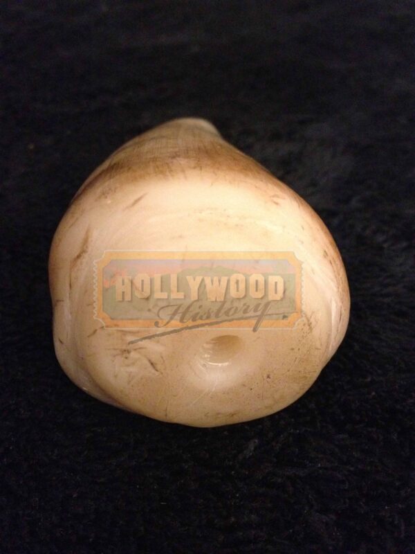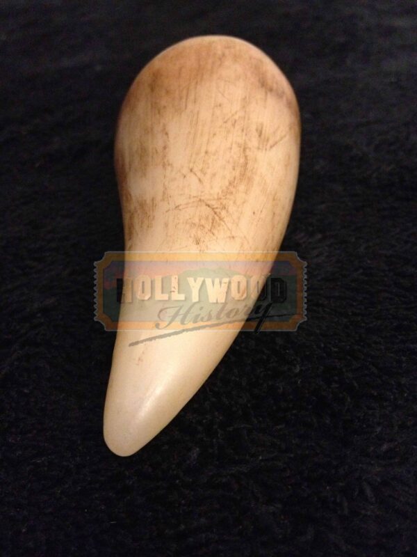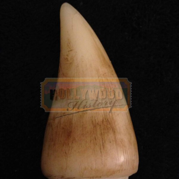 Multimillionaire John Hammond (Richard Attenborough) has a plan for a new theme park: a secluded island where visitors can observe dinosaurs cloned using advanced DNA technology. But when an employee tampers with the security system, the dinosaurs escape, forcing the visitors to fight for their survival. Jeff Goldblum and Laura Dern star, as their computer-generated co-stars chew the scenery in this action-packed thriller. This is one of the T-Rex’s teeth utilized in the making of the blockbuster film and created by Stan Winston Studios. This 4” long T-Rex tooth features custom airbrush paint finish and a metal armature utilized for attachment to the animatronic creature’s mechanical effects internal armature. The teeth were threaded at the bottom to assist in quick replacement when broken or damaged. Please see our Custom Display Options, View our Gallery, or Contact Us for more information about Custom Displaying this item.
