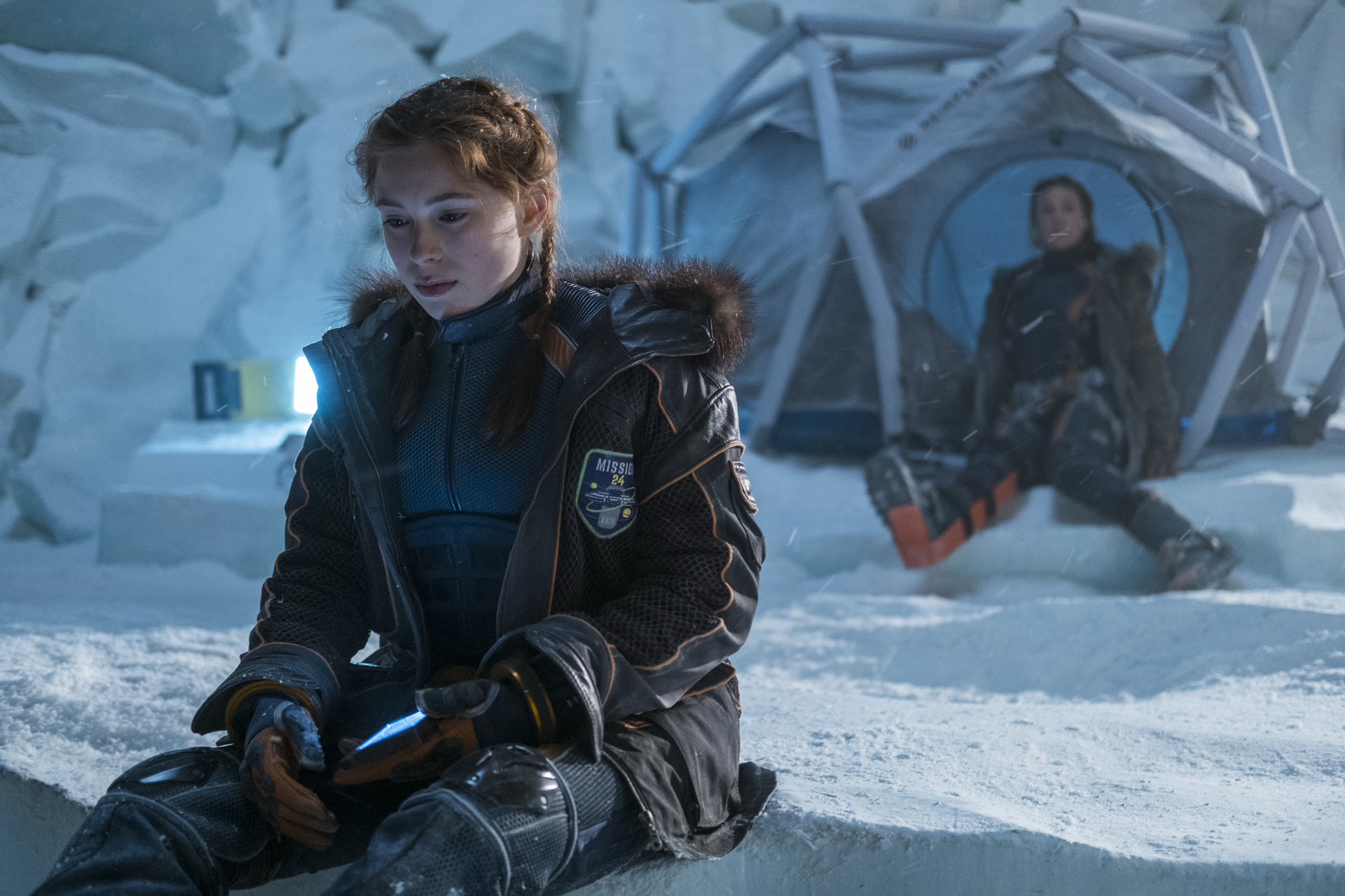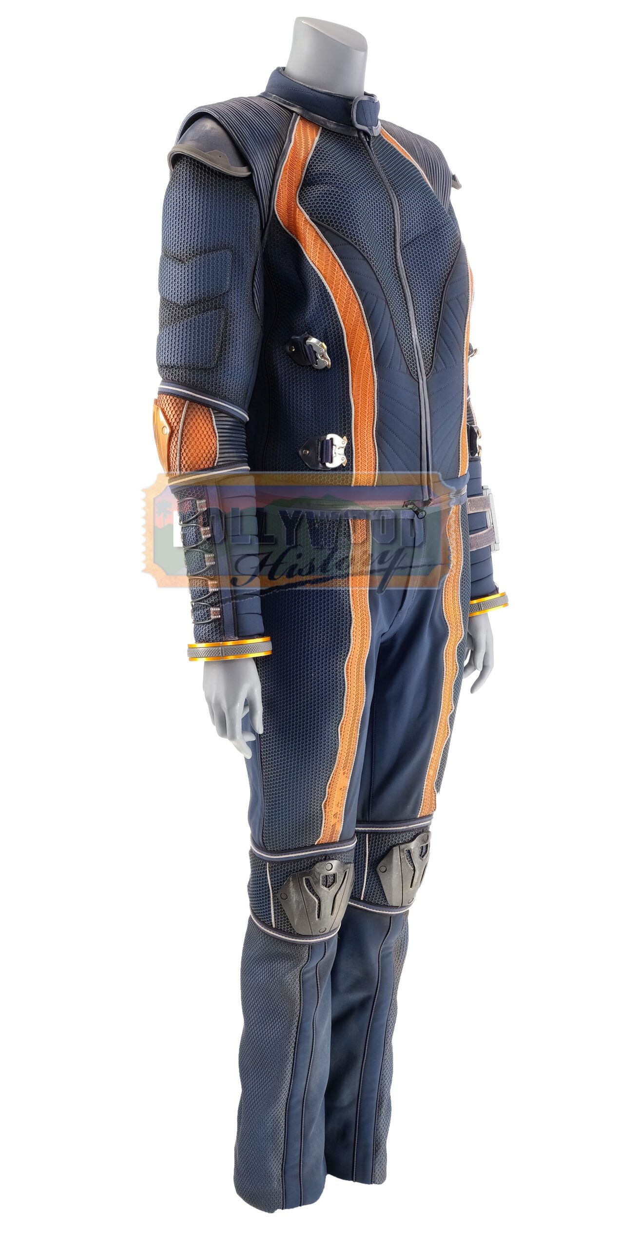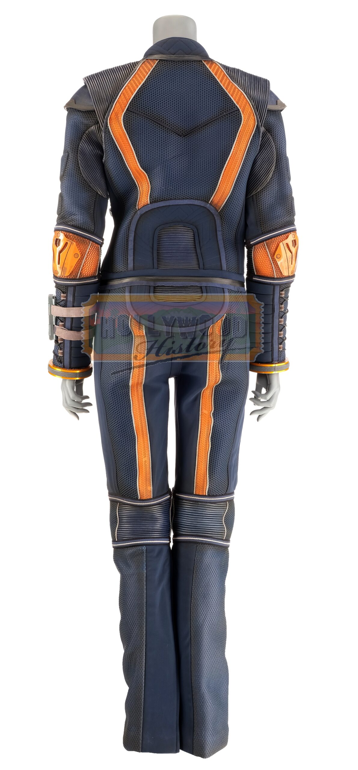 Penny Robinson’s (Mina Sundwall) spacesuit, wrist communicator and stunt backpack from Legendary Television’s sci-fi series Lost in Space. In Season 1, Penny wore her spacesuit when she escaped the Resolute. In the Season 2 episode “Shipwrecked,” Will (Maxwell Jenkins) gave the Robinsons copies of Penny’s space travel journal as Christmas gifts. This costume consists of a navy blue lycra and nylon blend jacket marked “Penny 2 Hero Season 3”, matching trousers, a grey plastic wrist communicator, a hand-painted grey and orange foam backpack labelled “Robinson”.