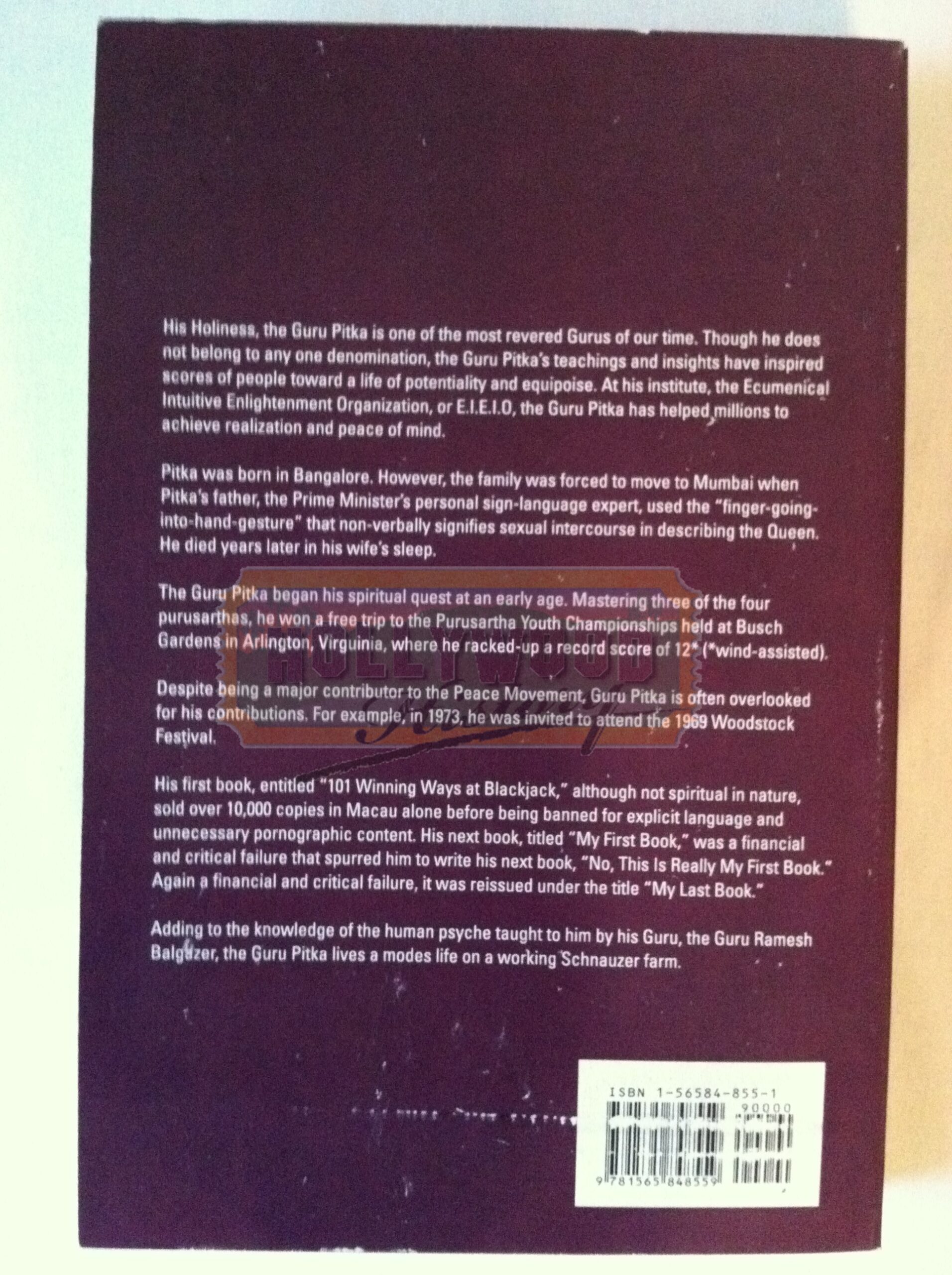Pitka, an American raised outside of his country by gurus, returns to the States in order to break into the self-help business. His first challenge is to settle the romantic troubles and subsequent professional skid of a star hockey player whose wife left him for a rival athlete. This prop book was used in the 2008 comedy film The Love Guru starring Mike Myers, a book on the grieving process ‘What’s This? A Dead One of These!‘ is one of the visual gags in the movie and is seen clearly on screen being held up by The Guru Pitka. With the custom made book cover being attached to the interior book, “Our Unfree Press”.