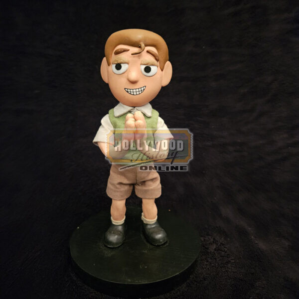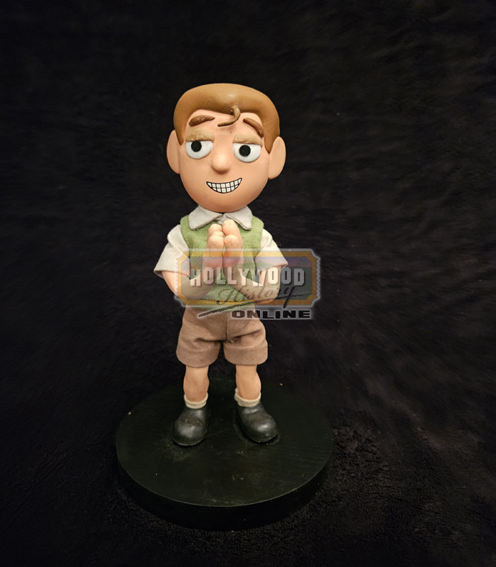 From the Adult Swim stop motion series Moral Orel, this is a screen used Young Clay Puppington puppet. Young Clay becomes Moral Orel’s repressed and hateful father, expressing abusive behavior to his entire family and widely regarded as the series’ main antagonist. Comes with the base seen in the pictures and approx. 10″ in height.