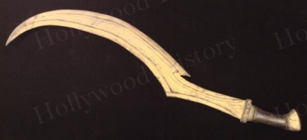 A Magi sword used in the Brendan Fraser sequal The Mummy Returns. Sword can be seen being used by the Magi when Imotep is killing the Pharaoh. Made of sturdy rubber with a wire metal frame and painted gold and black. Sword measures 34 inches in length.