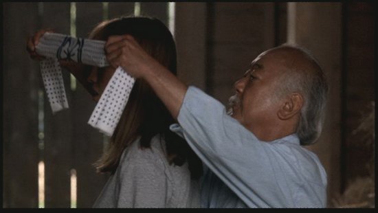 The fourth installment in the series finds Miyagi with a new pupil: 17-year-old firebrand Julie Pierce (Hilary Swank), who, mercilessly harassed by a group of neo-fascist male classmates, turns to Miyagi for help. This is a backup bandana made for use during the production. It is unfinished as can be seen by the extra white cloth on both ends. Please see our Custom Display Options, View our Gallery, or Contact Us for more information about Custom Displaying this item.