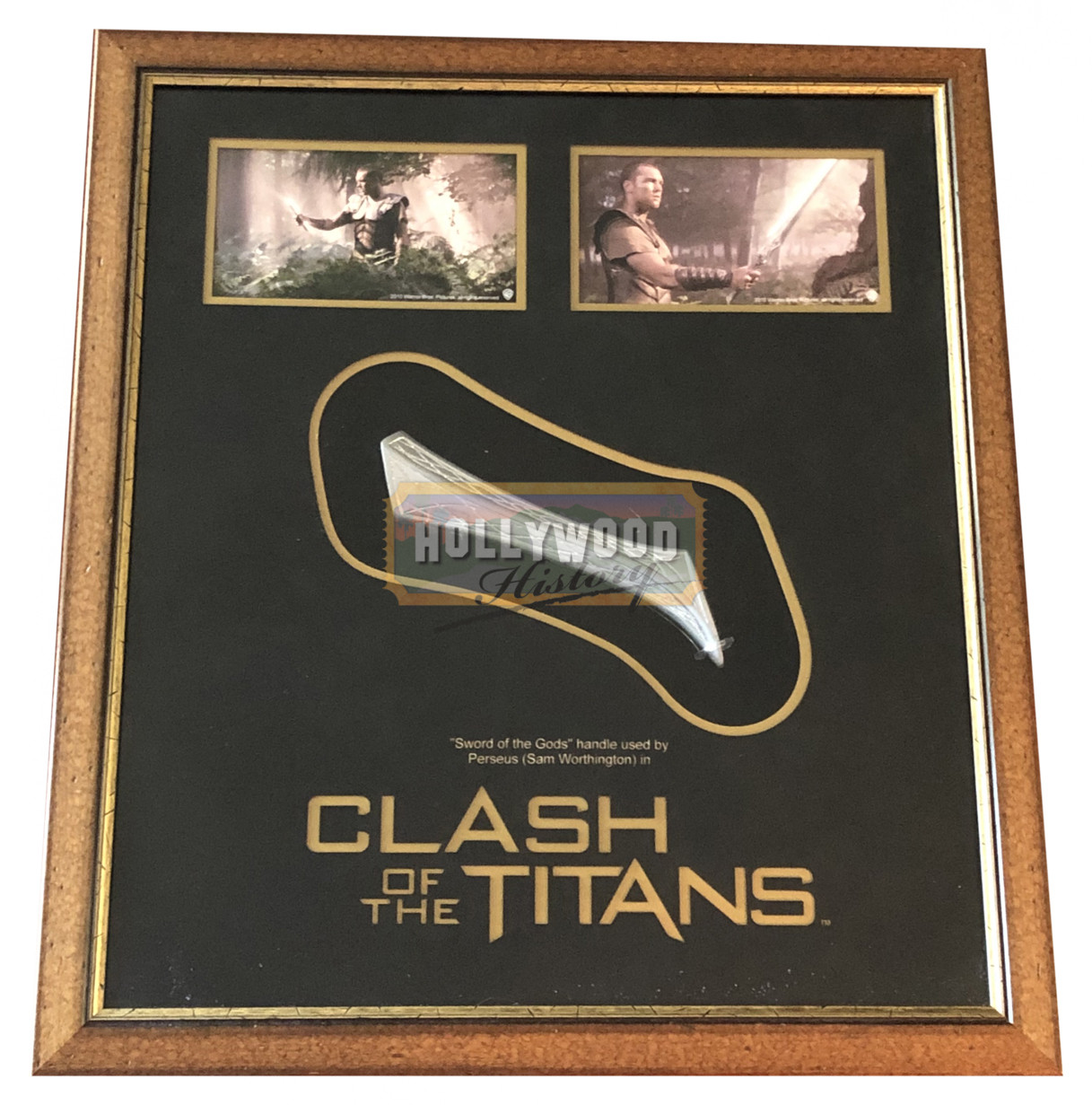 The Sword of the Gods, given to the demi-god Perseus (Sam Worthington) in the 2010 reboot of Clash of the Titans. Zeus (Liam Neeson), king of the gods, is tricked into sending his downtrodden brother Hades (Ralph Fiennes) to Earth to make the mortals fearful of the gods power never reckoning on the intervention of demi-god Perseus (Sam Worthington) as he fights to save Andromeda (Alexa Davalos), princess of Argos. This compact version of the Sword of the Gods was used by Perseus on his adventures through ancient Greece. A sword imbued with the magical power of Olympus, the easily portable handle had a blade extend from it when held and commanded by Perseus.