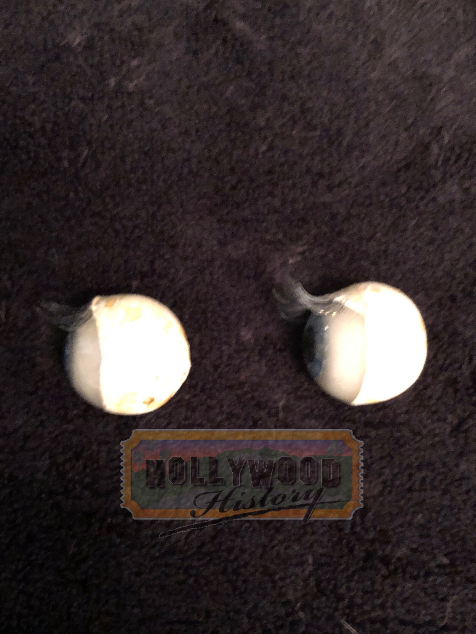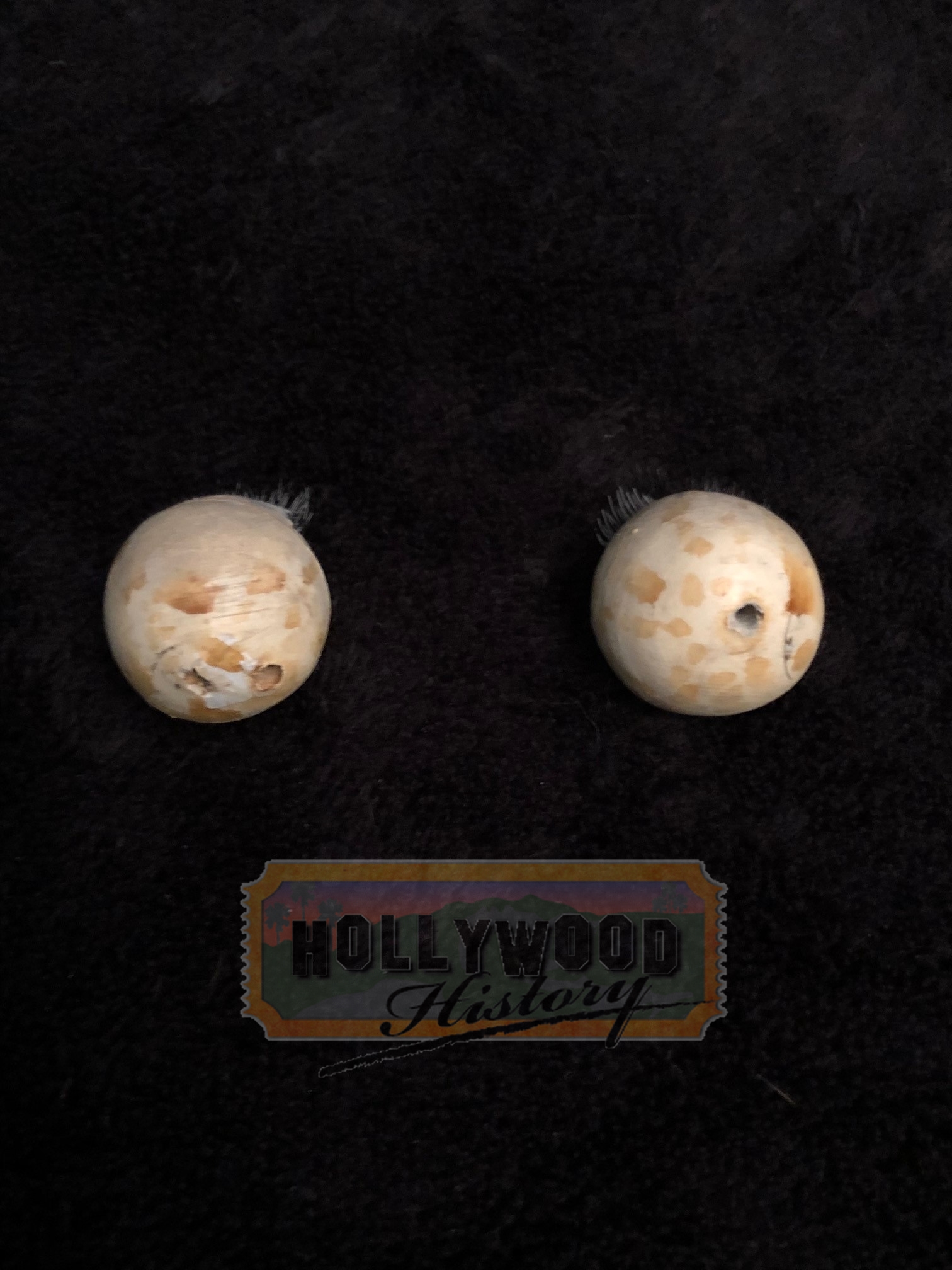 Poltergeist is a movie about a family whose suburban home is haunted by evil forces must come together to rescue their youngest daughter after the apparitions take her captive. Different scenes throughout the movie require different versions of the clown doll to be used. Different eyes were used with different clown dolls. This set of eyes was used with the main clown doll used during the filming.
