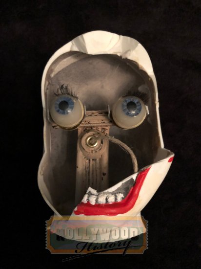 Poltergeist is a movie about a family whose suburban home is haunted by evil forces must come together to rescue their youngest daughter after the apparitions take her captive. This clown head is screen matched from the scene where Griffin Bowen (Kyle Catlett) is attacked by the clown doll and Griffin smashes its face by kicking it.
