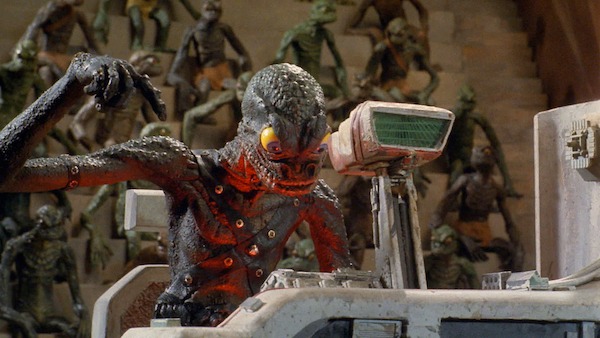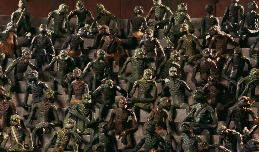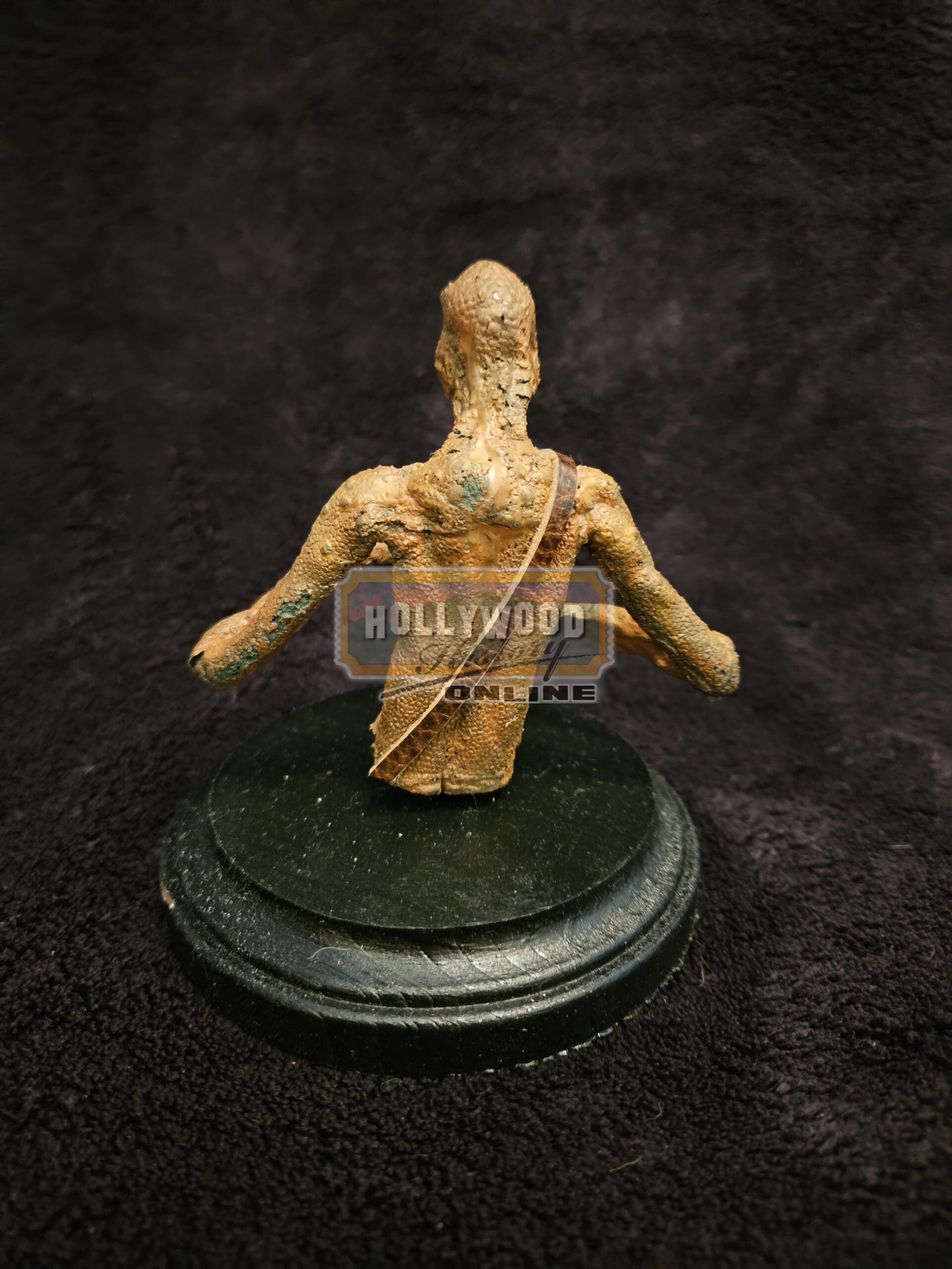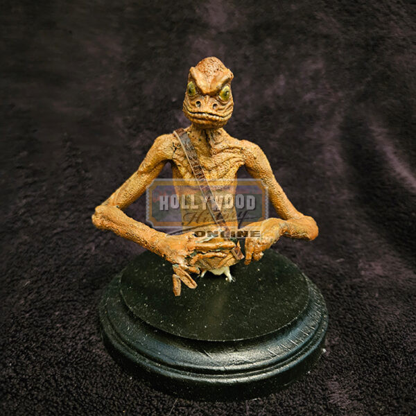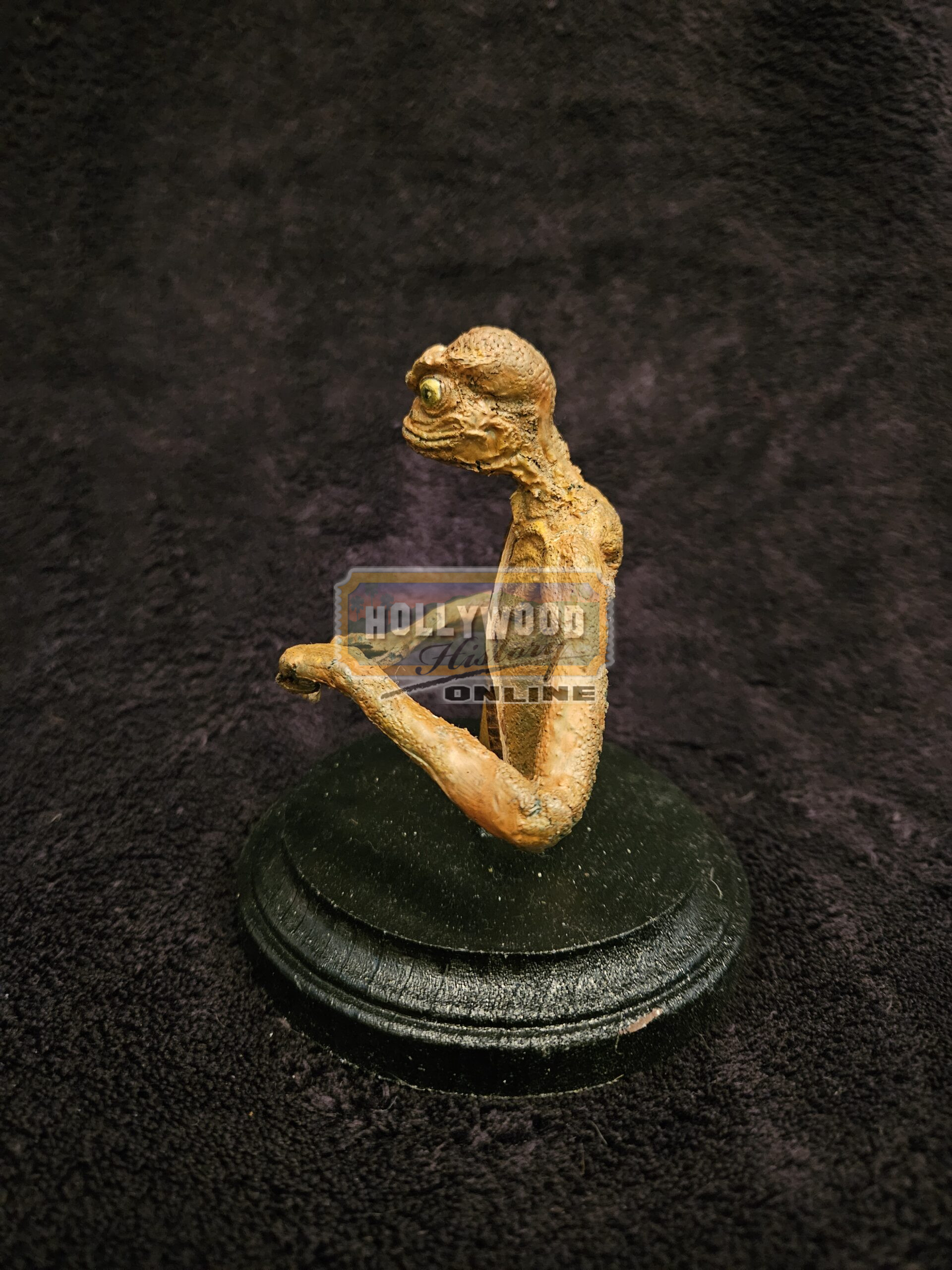 When a group of explorers go in search of a yeti, they find themselves taken captive by an ancient race of alien creatures. From the 2023 stop motion film The Primevals, this is one of the screen used 6″ scale half body lizardmen puppets. Versions such as this would be used when the lizardman puppets would not be seen waist down, saving the production time and money. Produced by Charles Band of Full Moon Features along with co-writer and director David Allen; the film project was a mixture of both passion and determination for Allen. Though he had been working on the production for a large part of his life, David passed away in 1999 with much work left to be done before completion. Left in the hands of David’s close friend Chris Endicott, he worked tirelessly on the massive undertaking finally completing it posthumously for Allen after over 50 years in development. The puppet is in overall great condition with wear on his fingers from heavy usage during animating.