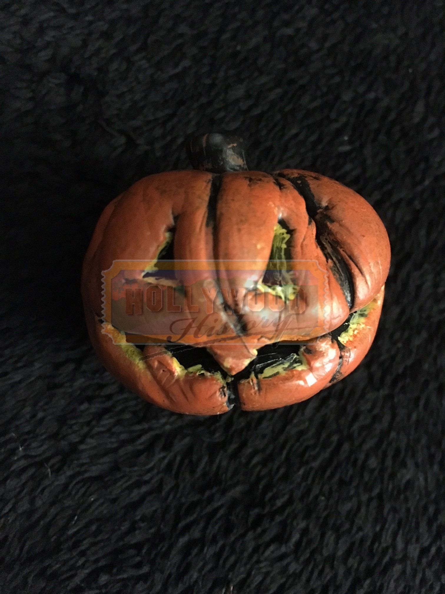 Jack Skellington, king of Halloween Town, discovers Christmas Town, but his attempts to bring Christmas to his home cause confusion. This is a screen used Pumpkin from the Tim Burton animated classic “The Nightmare Before Christmas”. This Pumpkin was made and used by “Skellington Productions” for scenes showing the Pumpkins throughout Halloween Town.