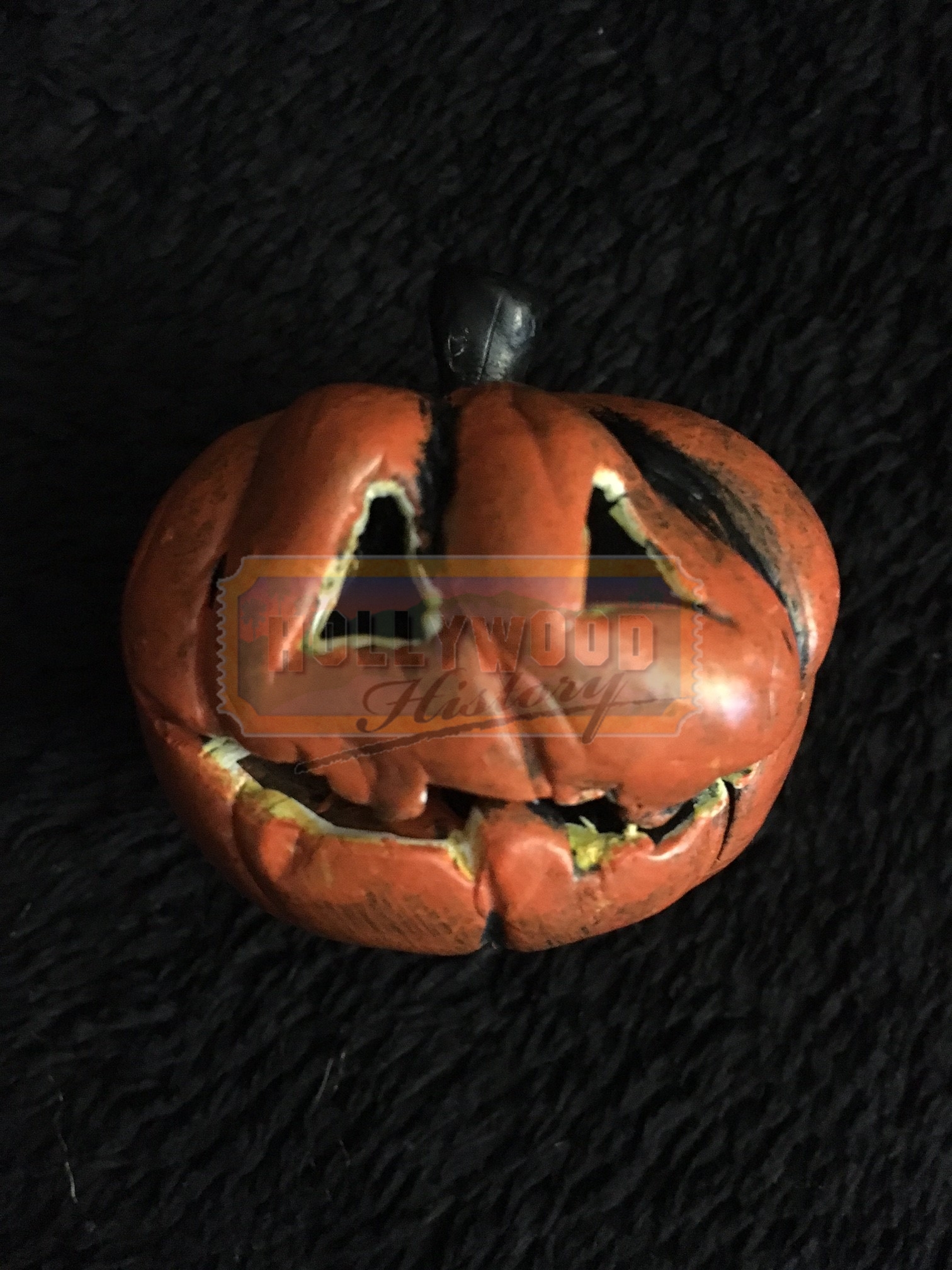Jack Skellington, king of Halloween Town, discovers Christmas Town, but his attempts to bring Christmas to his home cause confusion. This is a screen used Pumpkin from the Tim Burton animated classic “The Nightmare Before Christmas”. This Pumpkin was made and used by “Skellington Productions” for scenes showing the Pumpkins throughout Halloween Town.