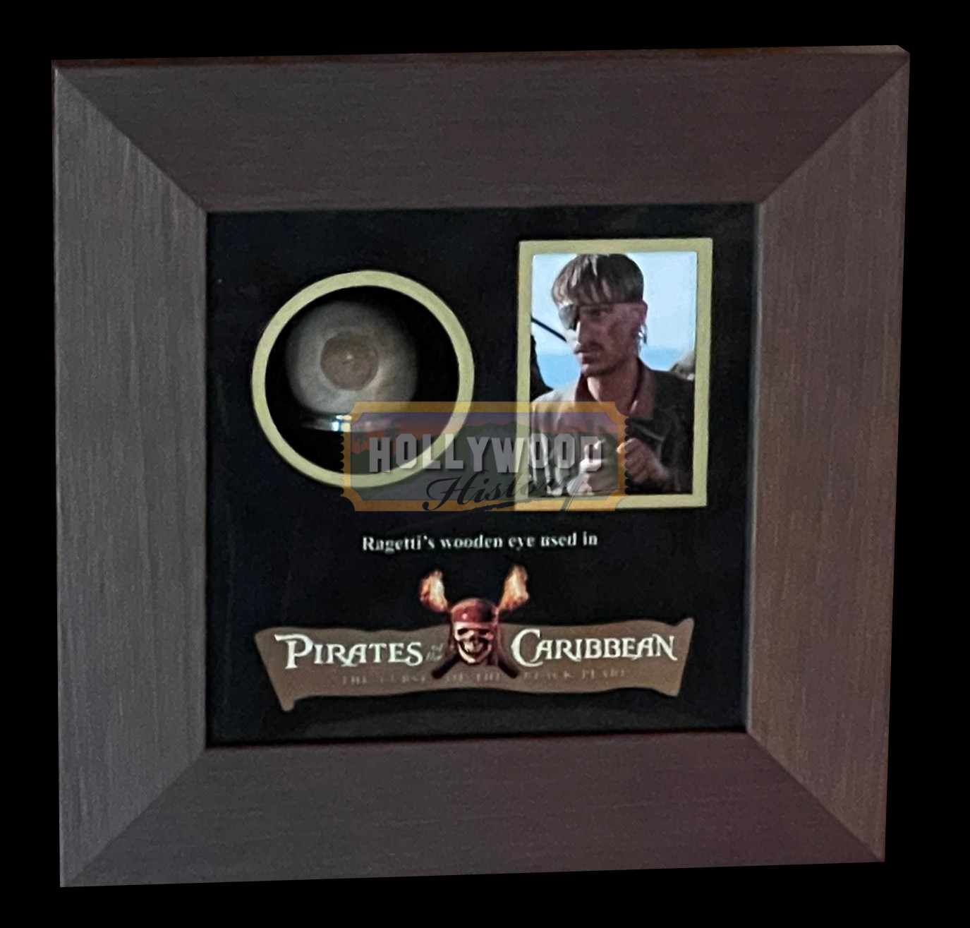 Blacksmith Will Turner teams up with eccentric pirate “Captain” Jack Sparrow to save his love, the governor’s daughter, from Jack’s former pirate allies, who are now undead. This is Ragetti’s wooden eye used in the 2003 film, Pirates of the Caribbean: The Curse of the Black Pearl. Known to be a piece of eight that was given by Boris Palachnik to Hector Barbossa this piece of wood is carved to appear as if its a wooden eye. Ragetti’s eye can be seen multiple times in the film especially for close up shots during the battle of Isla de Muerta, where it pops out in the middle of the fight. In the movie “At World’s End,” Barbossa took the eye back, along with all the other pieces of eight and the eye finally burns to a crisp during the incantation to release Calypso from her human form.