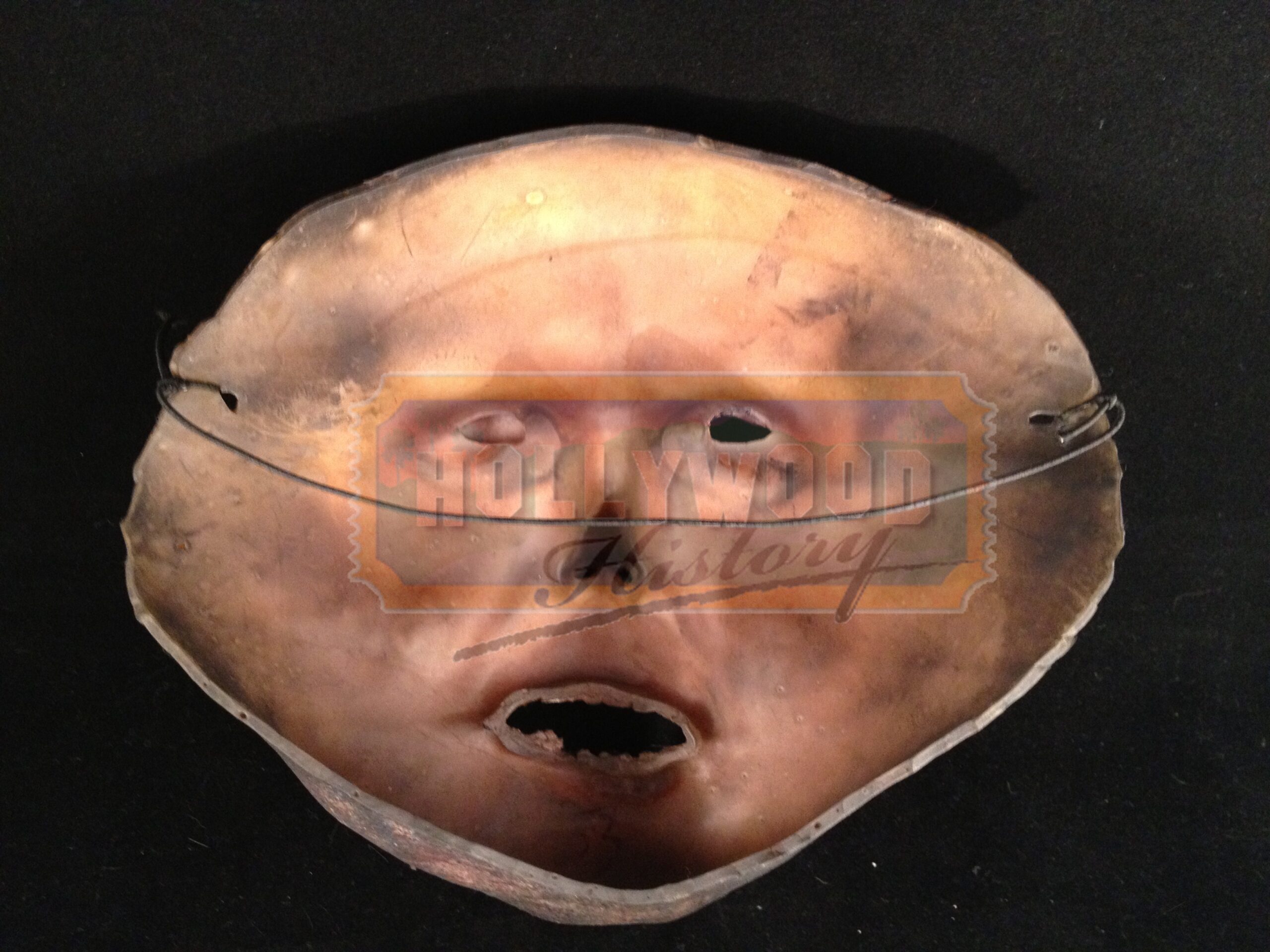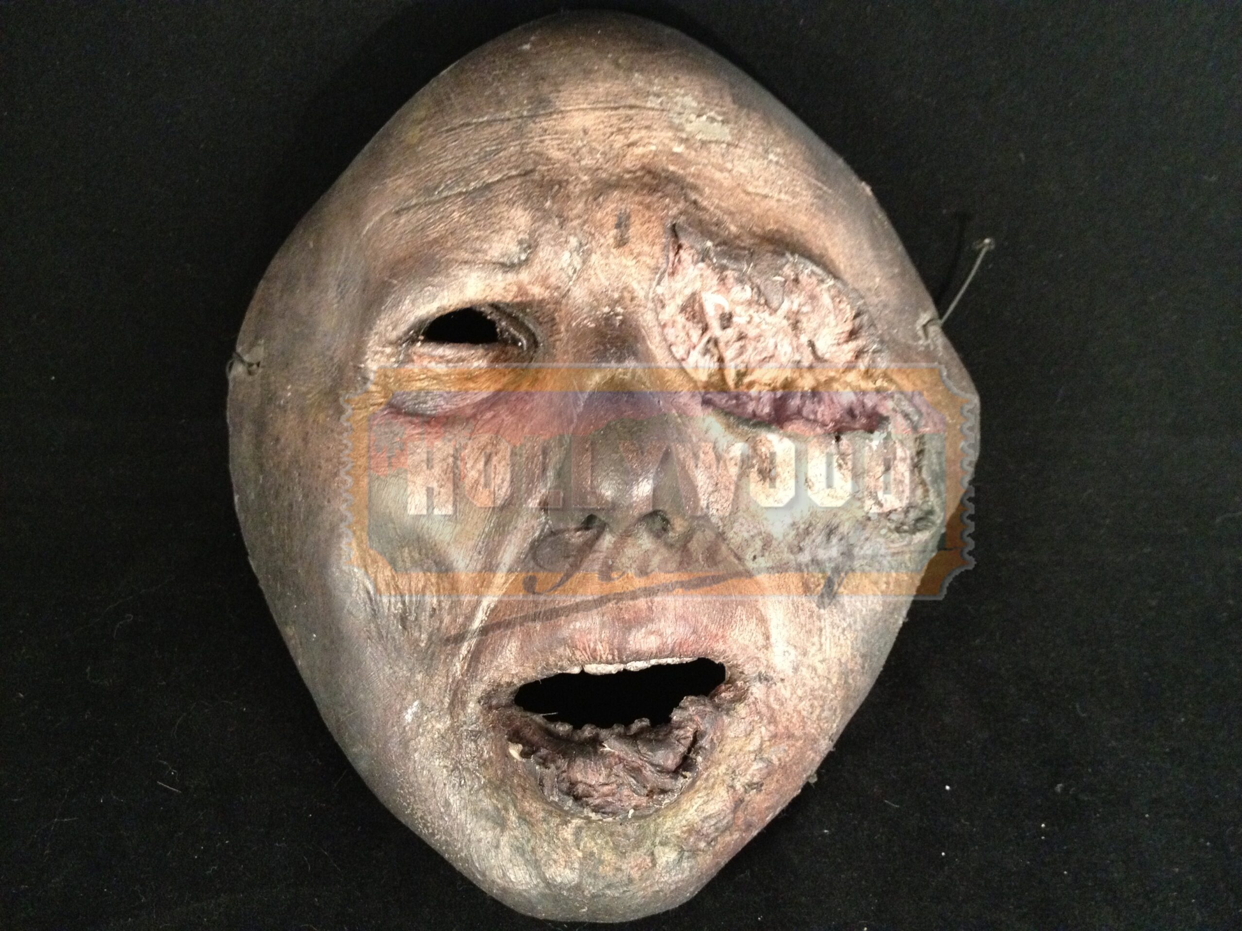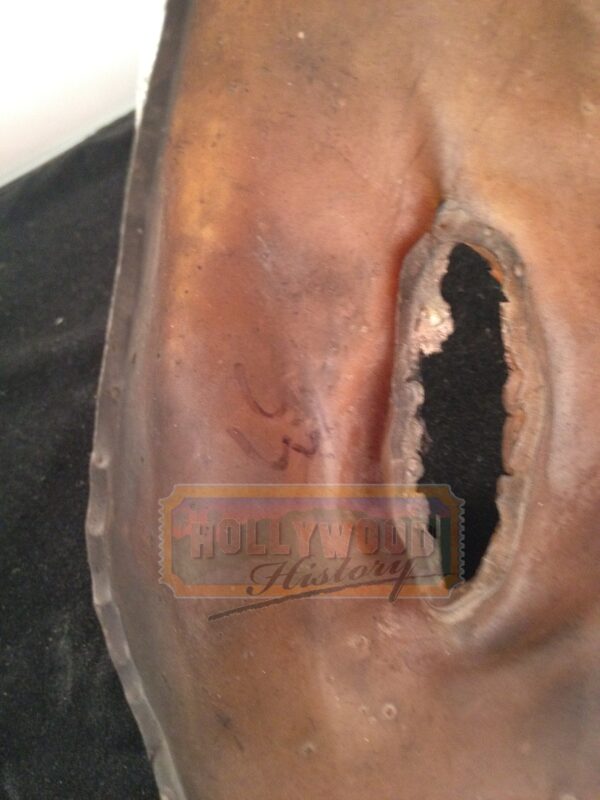 The Undead Apocalypse continues unabated as super-soldier Alice (Milla Jovovich) finds her way to a supposed sanctuary in Los Angeles, which may just be a deadly trap set for her by the ruthless Umbrella Corporation. The fourth film in Paul W.S. Anderson’s blood-soaked saga finds Alice teaming up with Claire (Ali Larter) and Chris (Wentworth Miller) and a handful of stragglers to save what’s left of humanity. From the 2010 horror film Resident Evil: Afterlife this is a latex Zombie Mask. Masks like these were worn by the background zombies and although there were several zombies on set all the masks were individually made and hand painted. This particular mask has “33” painting on the inside chin of the mask.