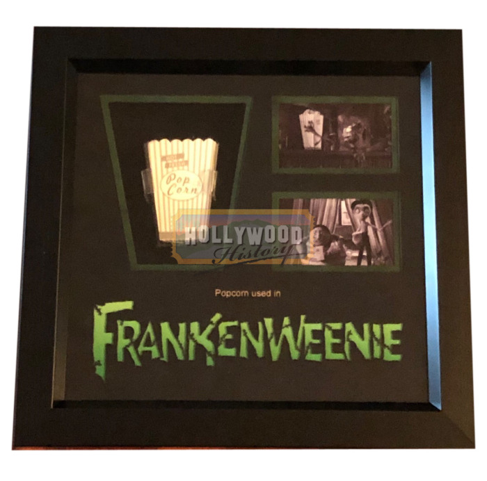 When a boy’s beloved dog passes away suddenly, he attempts to bring the animal back to life through a powerful science experiment. From the 2012 Tim Burton stop motion film Frankenweenie, this is a box of popcorn used in the film. This box of popcorn was used during the scenes when Victor sees the monsters heading to the fair and goes with his classmates to help deal with them. Victor watches one of the Sea-Monkeys explode after eating salt-covered popcorn and figures out that since the Sea Monkeys are fresh water, they cannot handle eating the salt-covered popcorn. So they cook up and feed a bunch of popcorn to eradicate all the Sea-Monkeys at the fair making them all explode together.