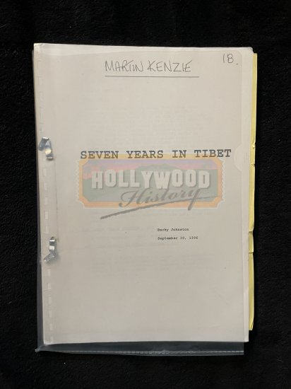 True story of Heinrich Harrer, an Austrian mountain climber who became friends with the Dalai Lama at the time of China’s takeover of Tibet. From the production of the 1997 adventure film, Seven Years in Tibet, this is a production used script that originally belonged to Martin Kenzie. Martin is credited in the film as a camera operator and the script assisted him in knowing how to prepare the camera shots needed.