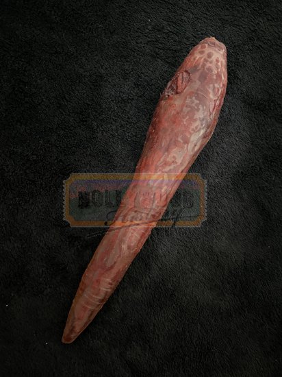 The Long One is a mysterious parasitic alien and the only one of its kind. It travels across the universe in search of life forms to kill and feast upon and is hellbent on consuming and destroying everything on the current planet it’s on until nothing is left. The Long One exists as many parasitic forms, working like a “conscious disease”. The Long One arrived on Earth via a meteor that landed in the fictional town of Wheelsy in the 2006 film Slither. These are Slugs which are small, red, worm-like forms similar to the Long One which moves by slithering or swimming. Like the Needle, the Slugs also implant themselves into hosts, although in their case, they are swallowed; changes are mostly behavioral and not physical. A physical change that is noticeable is the bleeding from the mouth, due to the forced entry of the Slug. This Slug is made of a soft rubber that they coated in a red substance to look like blood. It also comes with a MastersFX certificate.