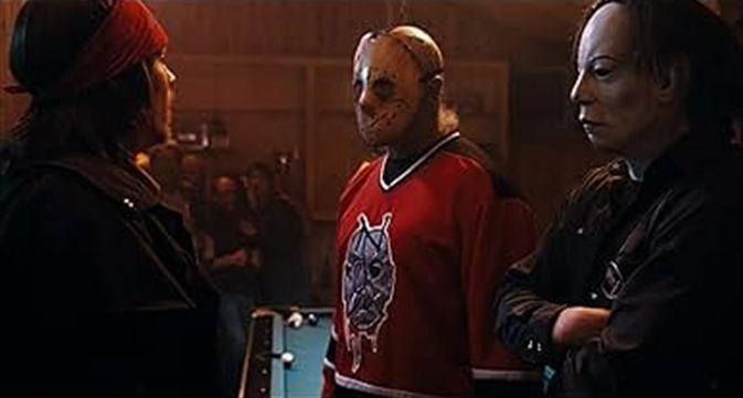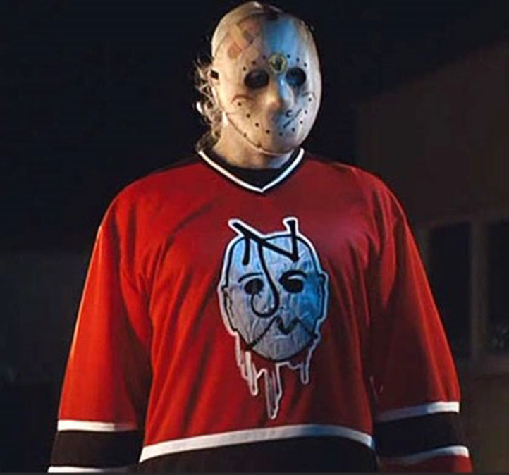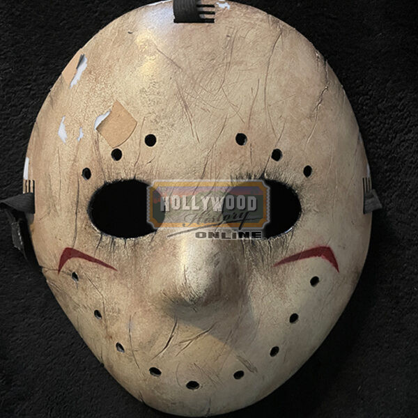 It’s Halloween night, and slacker video clerk Stan Helsing and friends detour into a town cursed by the biggest monsters in movie history. This is Mason’s (Ken Kirzinger) hockey mask seen throughout the 2009 horror parody Stan Helsing. Playing a spoof of Jason, Ken Kirzinger was the only actor in the film that has ever portrayed one of the horror character icons. He played the famous Jason Voorhees in the 2003 film, Freddy vs. Jason. This mask was heavily used and remnants of the band-aid cross are still present though the other stickers were removed by the production.