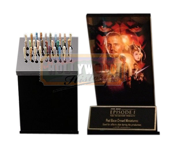 In this Star Wars prequel, Qui-Gon Jinn (Liam Neeson) and a young Obi-Wan Kenobi (Ewan McGregor) must protect the Queen of Naboo (Natalie Portman) from the evil clutches of Darth Sidious and Senator Palpatine. Along the way, they meet a prepubescent Anakin Skywalker, who shows intimations of a great gift. This set of 30 Q-Tips (along with thousands of others) were filmed for extreme wide angles of the grand stands to give the illusion of people and creatures cheering on the Pod Race. Painted various colors, the Q-tips were hit with fans to provide movement when the cameras were rolling. This footage was ultimately not used in the final cut of the film, these are still a very interesting part of the production process of Star Wars: The Phantom Menace. The Q-Tips are presented on a custom Acrylic holder for display along with a mini poster and plaque.