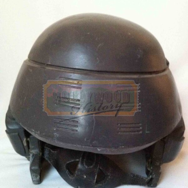 In this sci-fi adventure based on a novel by Robert A. Heinlein and directed by Paul Verhoeven, Earth is attacked by fire-spitting, brain-sucking bugs, and the city of Buenos Aires is wiped off the map. Coming to the rescue are Johnny Rico (Casper Van Dien), Dizzy (Dina Meyer), Carmen (Denise Richards) and Ace (Jake Busey), courageous soldiers who travel to the distant Klendathu system for the ultimate showdown. This helmet was custom made for the production for use by various actors. The helmet features foam padding on the inside and a chin strap attached. The helmet is in good condition with only minor paint chips and marks. Please see our Custom Display Options, View our Gallery, or Contact Us for more information about Custom Displaying this item.