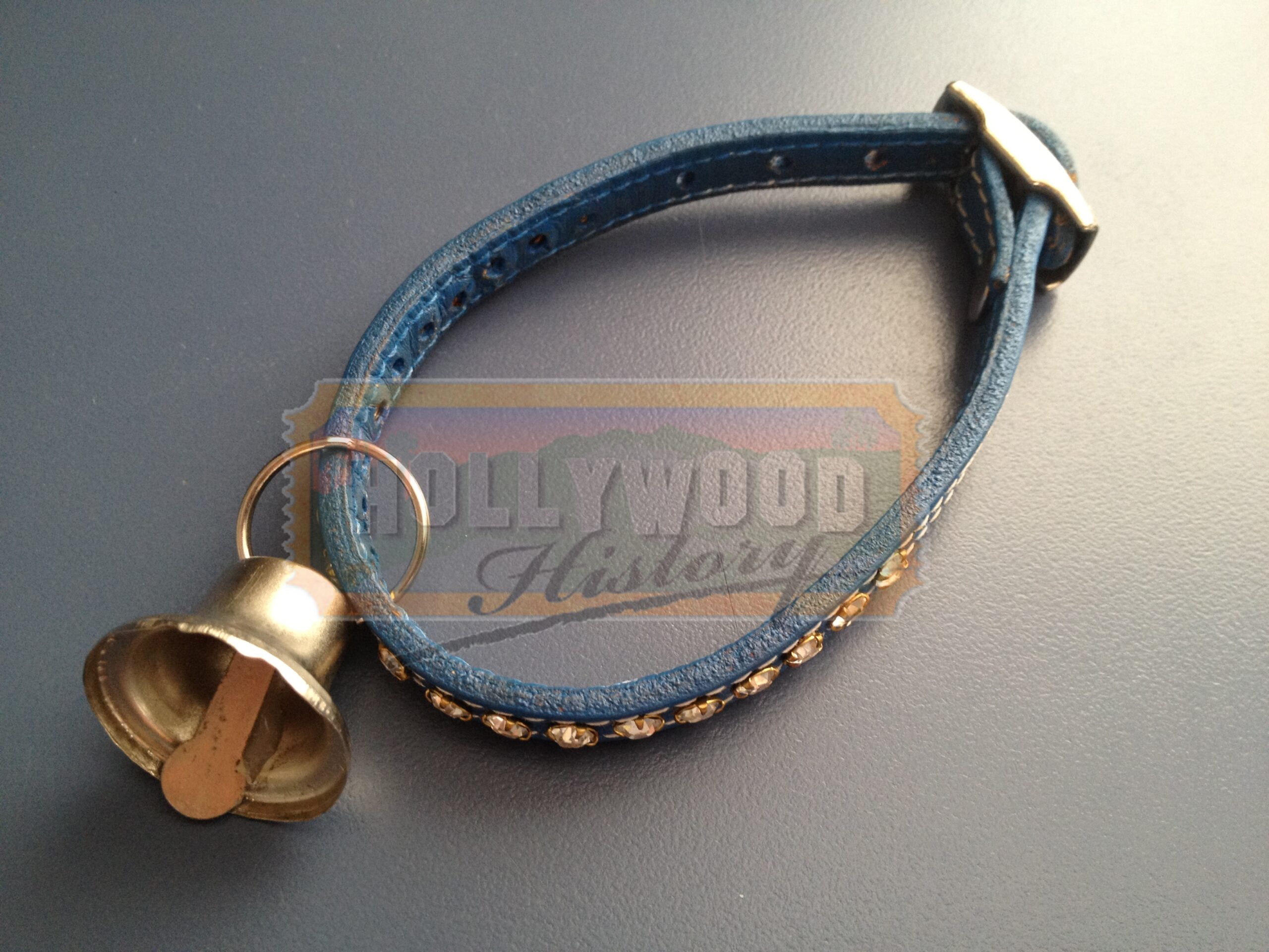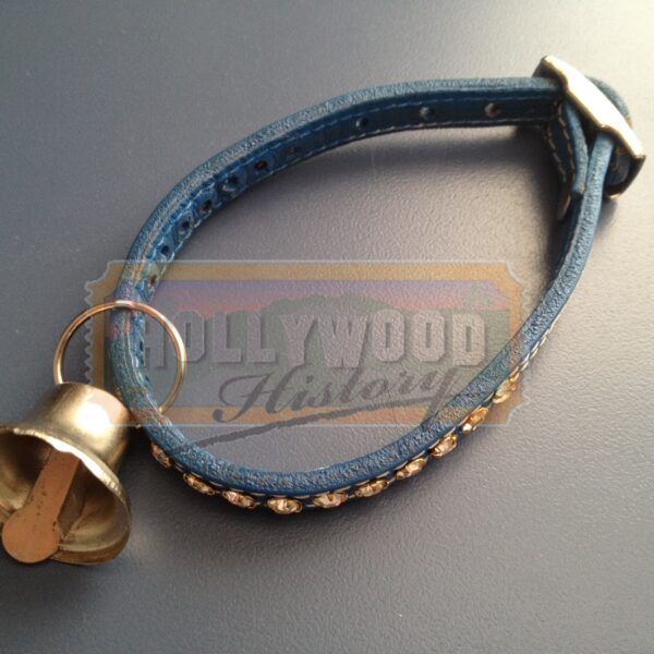 The lovable mouse is back! In this sequel to the 1999 blockbuster based on E.B. White’s book, Stuart, an adorable white mouse, still lives happily with his adoptive family, the Littles, on the east side of Manhattan’s Central Park. More crazy mouse adventures are in store as Stuart (voiced by Michael J. Fox), his human brother, George (Jonathan Lipnicki), and their mischievous cat, Snowbell (voiced by Nathan Lane), raise the roof. This collar was worn on screen by “Snowbell” and can be seen throughout the entire film. It is a small blue collar with rhinestones around the outside and a silver colored bell hanging from the middle. The inside piece of the bell has been glued to the side so that it will not make noise.