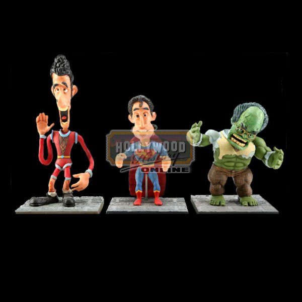 A set of three Will Vinton Studios Seinfeld superhero puppets from an unproduced segment for the comedy television series Seinfeld. According to Jerry Seinfeld, Will Vinton Studios was commissioned to pitch a “secret” claymation episode of the series to the network. While he said he “had the studio ready, and the figures ready, and it was all good to go,” Seinfeld was concerned that Vinton’s team had also recently produced a claymation segment for Home Improvement, and the Seinfeld episode was ultimately never produced. These puppets of Jerry Seinfeld as Superman, George Costanza (Jason Alexander) as Hulk, and Kramer (Michael Richards) as Plastic Man were made by Will Vinton Studios.
