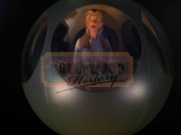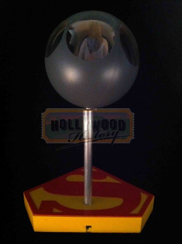 The 1984 film Supergirl starring Helen Slater in her first motion picture role, playing the part of the DC Comics superheroine “Supergirl” The film is a spin-off from the Salkinds’ Superman film series which starred Christopher Reeve and tells the story of Kara Zor-El (Helen Slater) which lives in an isolated Kryptonian community “Argo City” located in trans-dimensional space. Zaltar (Peter O’Toole) allows Kara to see a unique and immensely powerful item known as the Omegahedron, which he has borrowed without the knowledge of the city government, and which powers the city. However, after a mishap, the Omegahedron is lost in space. Much to the distress of her parents, Kara follows it to Earth (undergoing a transformation into “Supergirl” in the process) in an effort to recover it and save the city. This is the screen used miniature ship that carries Supergirl from her home planet to earth. Inside you can also see the miniature Supergirl figure that is seen on screen flying inside the ship. The ship also has a small light inside that has not been tested to see if still operable, and comes mounted on an impressive Supergirl themed tabletop display.