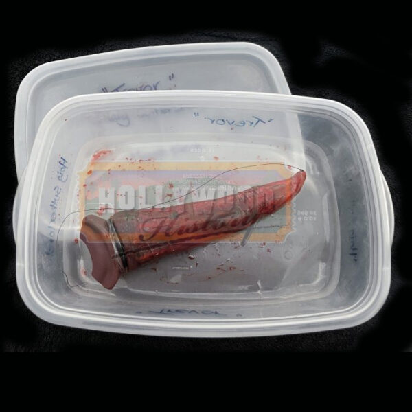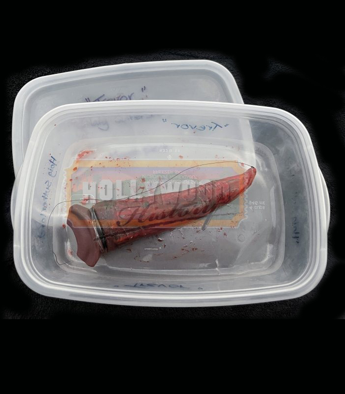 The Long One is a mysterious parasitic alien and the only one of its kind. It travels across the universe in search of life forms to kill and feast upon and is hellbent on consuming and destroying everything on the current planet it’s on until nothing is left. The Long One exists as many parasitic forms, working like a “conscious disease”. The Long One arrived on Earth via a meteor that landed in the fictional town of Wheelsy in the 2006 film Slither. These are Slugs which are small, red, worm-like forms similar to the Long One which moves by slithering or swimming. Like the Needle, the Slugs also implant themselves into hosts, although in their case, they are swallowed; changes are mostly behavioral and not physical. A physical change that is noticeable is the bleeding from the mouth, due to the forced entry of the Slug. This Slug is made of a soft rubber that they coated in a red substance to look like blood. This version has a mouthguard and black string attached to it, which was used for Tom Heaton’s scenes as Tourneur to make the creature appear as though they are squirming in his mouth. It also comes with a MastersFX certificate.