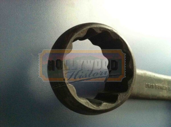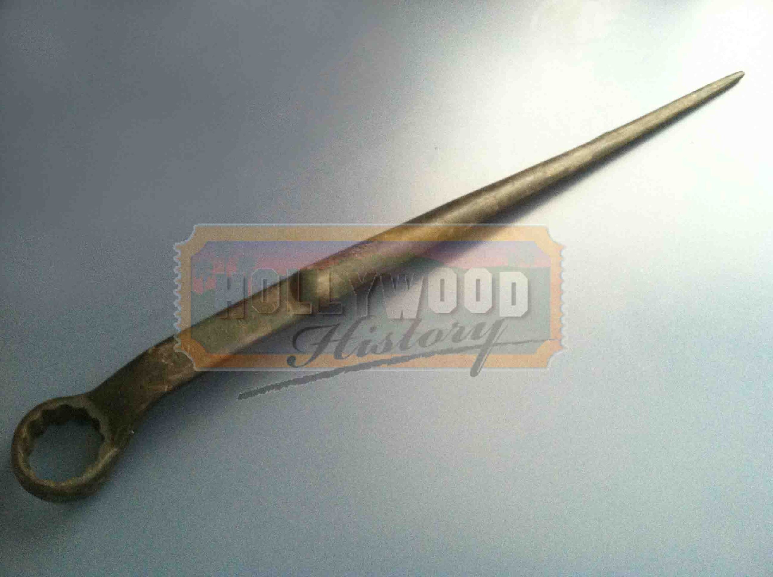 Wrong Turn is a 2003 American horror film directed by Rob Schmidt and written by Alan B. McElroy. Chris Flynn (Desmond Harrington) makes a “wrong turn” attempting to bypass bad traffic and ends up in an accident with a stranded Range Rover. The events that follow take Chris and the group of friends that owned the Range Rover on an unexpected journey to survive against three cannibalistic Mountain Men. This is a Rubber Stunt Tire Iron that Chris uses in the Mountain Men’s cabin when he is trying to save Jessie (Eliza Dushku) whom has been captured. It was used in the fight scene when a real tire iron would not be safe to use. Please see our Custom Display Options, View our Gallery, or Contact Us for more information about Custom Displaying this item.