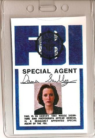 FBI agents Fox Mulder and Dana Scully investigate paranormal cases which takes them all the way to alien conspiracies within our government and even puts their lives and careers at risk. Together, they try to solve the mysteries within our government, no matter what they have to do, and along the way they try to solve any other case that’s related to the paranormal. This is the hanging ID badge that Gillian Anderson,as Dana Scully, wears in various episodes in the 5th season. ID is hand signed by the propmaster and comes in a clear vinal sleeve with metal clip. Comes with a COA from the shows propmaster. Measures approx 4 3/4″ x 3 1/4″